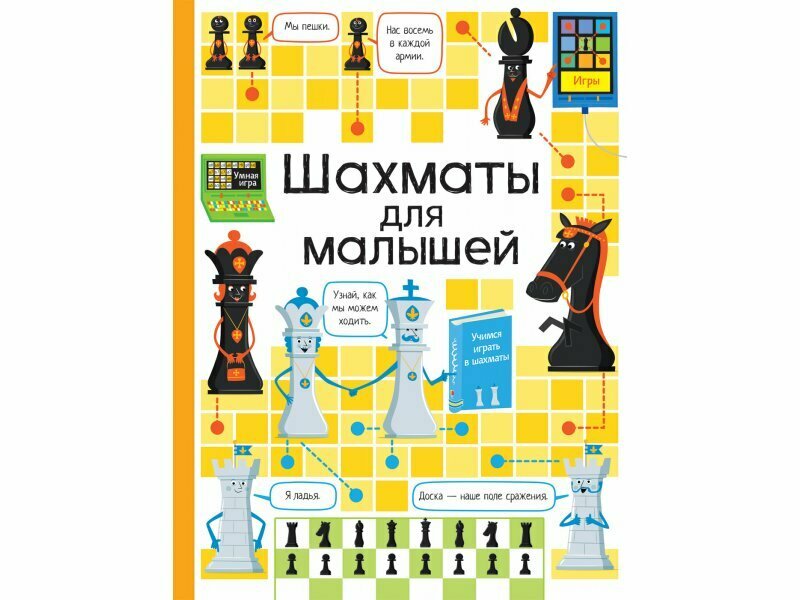 Эта книга станет первым шагом к знакомству ребенка с шахматами. Автора книги Кэти Дэйнс научил играть в шахматы её сын, Джо Бёркс, который в 2017 году выиграл британский чемпионат по шахматам в возрасте до 9 лет. В книге «Шахматы для малышей» дадут советы по атаке и защите на шахматном поле, поделятся дополнительными интересными фактами и привьют любовь к старинной игре. А благодаря красочным иллюстрациям и интерактивной форме обучения, играть будет весело и просто.
