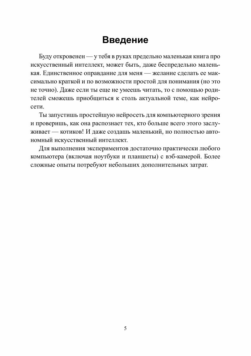 В книге описываются простейшие эксперименты по созданию и тестированию нейросети для опознавания животных (котов) в реальном времени. Для выполнения опытов не требуется редкое или дорогостоящее оборудование.