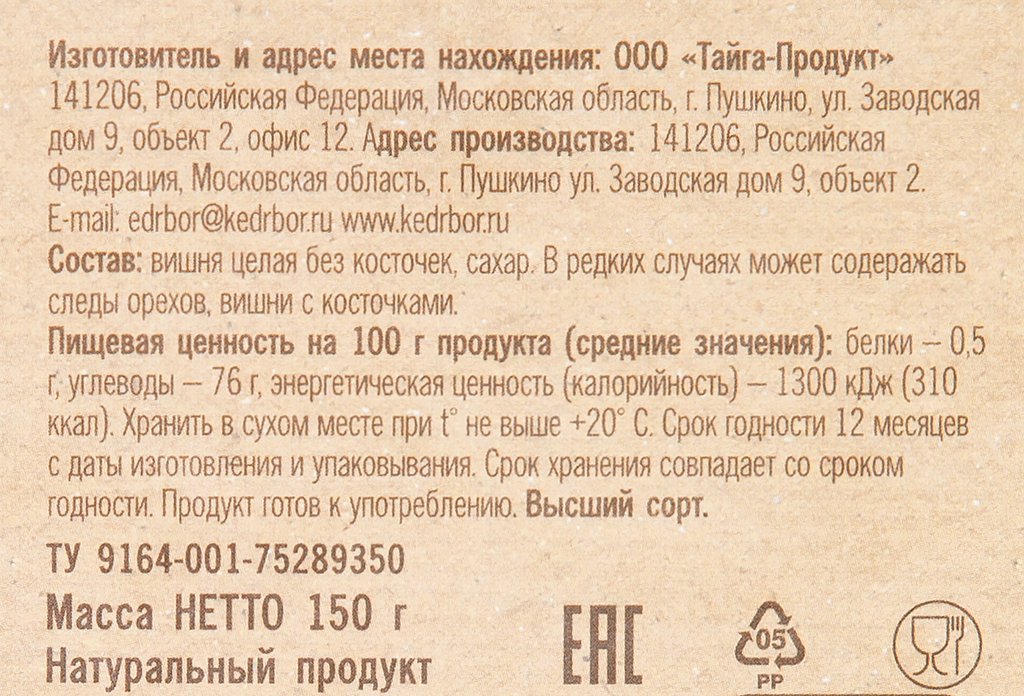 Сервис сравнения цен СкидкаГИД предлагает сравнить цены на товар «Вишня Кедровый Бор Сушеная 150г»