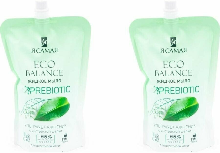 Я Самая Eco Balance Жидкое мыло с Экстрактом Шелка Дой-Пак 500мл - 2 шт. Жидкое мыло для ухода за телом увлажняющее Я самая Eco Balance с экстрактом шелка подходит для бережной очистки рук и тела от любых загрязнений. Мягкие тензиды, полученные из экстракта шелка превосходно удаляют загрязнения кожи, не вызывая ее раздражения. Натуральный экстракт шелка и пребиотик в составе мыла защищает кожу от сухости и обеспечивает антисептический эффект благодаря антибактериальной активности. Жидкое увлажняющее мыло для рук с экстрактом шелка обеспечивает бережное очищение кожи, одновременно ухаживая за ней и сохраняя природную красоту. Натуральный растительный пребиотик Biolin P восстанавливает естественный микробиом кожи и усиливает ее защитные функции, поддерживая максимальную увлажненность и уменьшая риск возникновения несовершенств. Экстракт шелка обладает уникальным увлажняющим свойством, напитывая клетки кожи влагой, минералами и витаминами, а также обеспечивает дополнительное питание и восстановление кожи. Мыло для тела подходит для всех типов кожи!