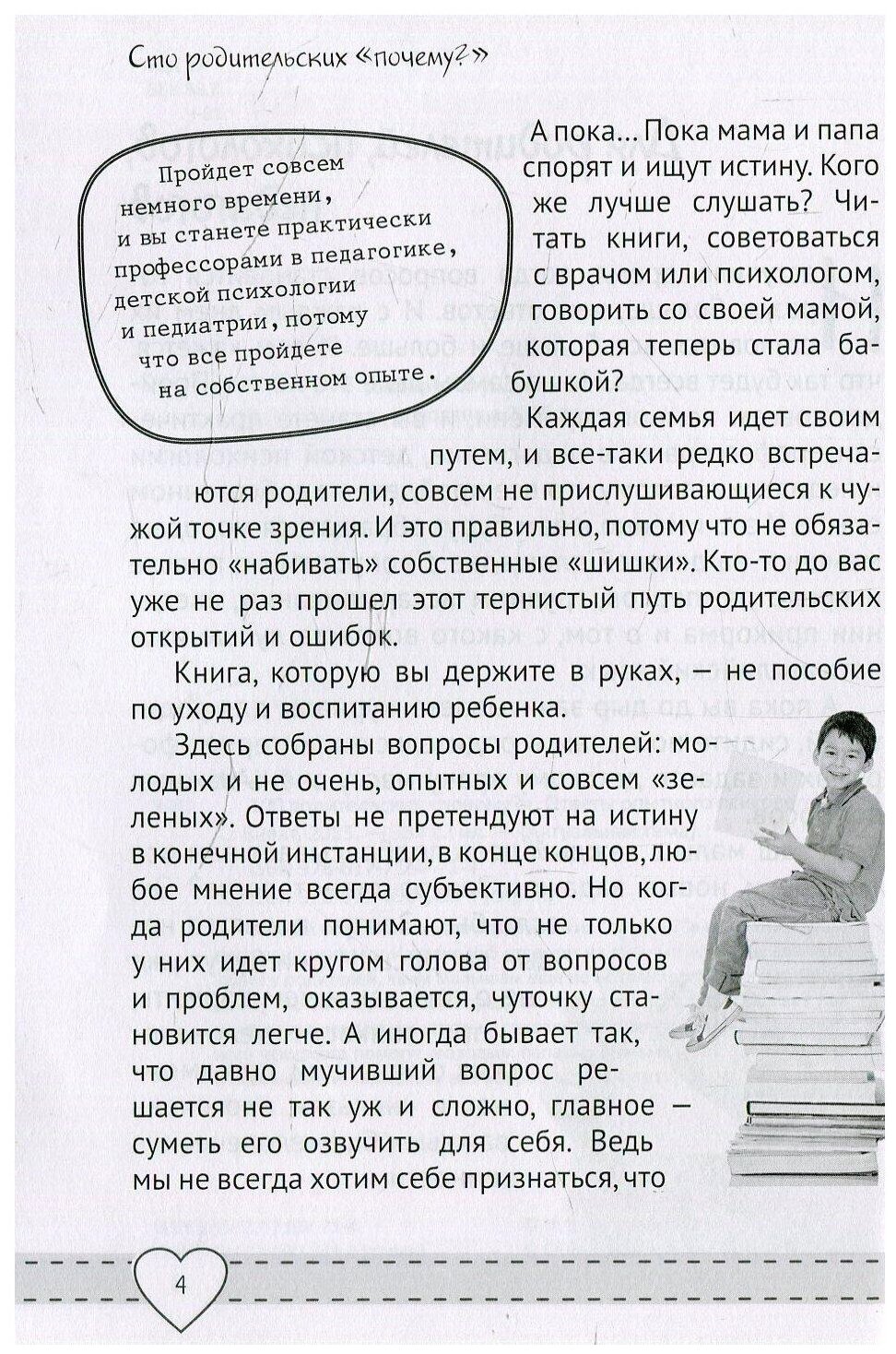 Однако выход есть, и это - новая книга известного практикующего психолога Натальи Чуб "Сто родительских почему". Здесь в форме ответа-вопроса автор отвечает на главные "почему", возникающие у родителей, чьим малышам еще не исполнилось шести лет. Правда ли, что памперсы очень вредны? Нужно ли ребенка пеленать? Что делать, если малыш всего боится или отказывается с вами разговаривать? Как реагировать на детские угрозы и справляться с капризами? Ответы на эти и другие вопросы вы найдете здесь. _x000D_