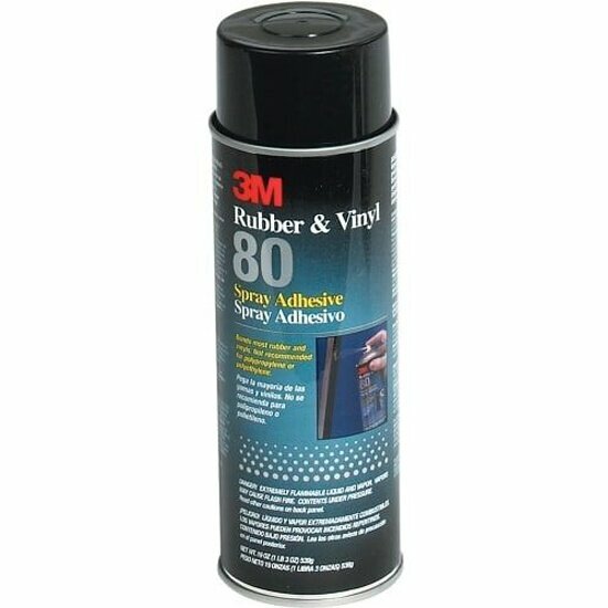 Клей контактный 80 3M - аэрозольный адгезив 80 является специальным неопреновым адгезивом с высокой стойкостью к действию пластификаторов, позиционируется как аэрозольный клей для резины и прекрасно оправдывает данное определение. Обладает высокой прочностью и температурной стойкостью. Благодаря нитевидному типу аэрозольных частиц не дает тумана при работе и позволяет производить точное нанесение. Имеет высокую скорость отверждения, что позволяет производить склеивание уже через 4 минуты после нанесения в то время как традиционные контактные клеи требуют перед склейкой 15-20 минут выдержки. Максимальное открытое время аэрозоля 80 ЗМ составляет 30 минут.