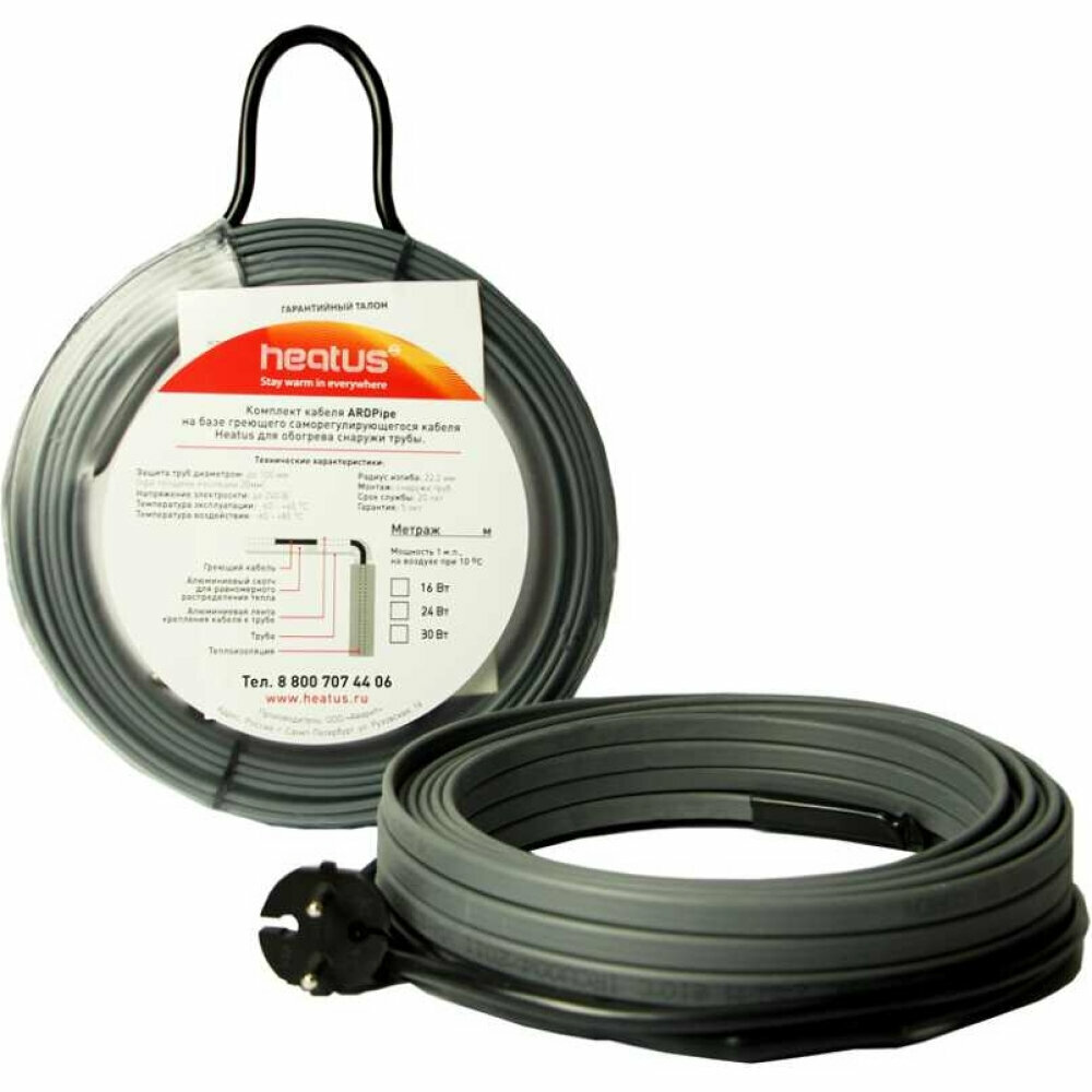 | Комплектация | греющий кабель; токоподводящий кабель с вилкой; инструкция по монтажу |