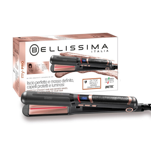 Bellissima My Pro Creativity Infrared B8 200 - это выпрямитель, который одним движением выпрямляет ваши волосы или укладывает текстурированными локонами. Инфракрасная технология нагрева и система 4 пластин позволяют нагревать волосы наиболее щадящим способом. Система 4Plates представляет собой четыре пластины, проходя через которые пряди идеально моделируются по всей длине, а безупречный результат укладки надежно фиксируется. Инновационное керамическое и кератиновое покрытие делает волосы шелковистыми, блестящими и упругими, придавая им живой блеск. Температура нагрева регулируется в диапазоне от 130°C до 230°C, чтобы обеспечить оптимальную укладку волос в зависимости от их типа. Края выпрямителя Bellissima My Pro Creativity Infrared B8 200 имеют специальную скругленную форму Special Round Design, облегчая формирование текстурированными локонов. Благодаря системе быстрого нагрева выпрямитель для волос готов к работе в считанные секунды.
