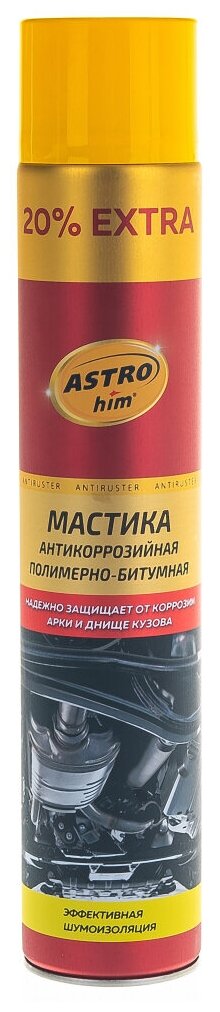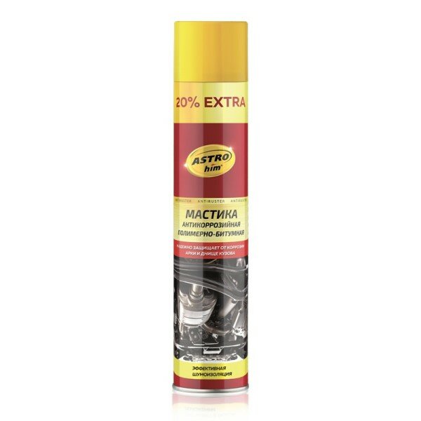 Антикоррозийная полимерно-битумная мастика ASTROhim аэрозоль, 1л используется для надежной защиты нижней части кузова автомобиля (пороги, корпуса дверей, стойки, лонжероны и т.п.) от коррозии.