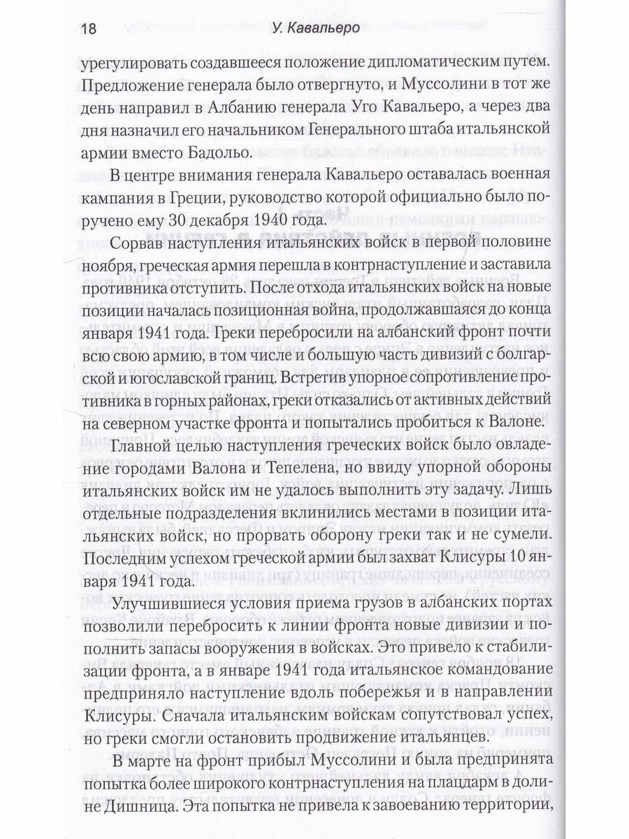 Граф Уго Кавальеро был одним из главных итальянских военачальников эпохи Второй мировой войны. Участник Итало-турецкой войны (1911-1912), успешный офицер альпийских стрелков в годы Первой мировой (1914-1918), бригадный генерал и представитель Италии на переговорах в Версале и, наконец, глава итальянского Генерального штаба и маршал Италии - вот далеко не полный послужной список автора этой книги.