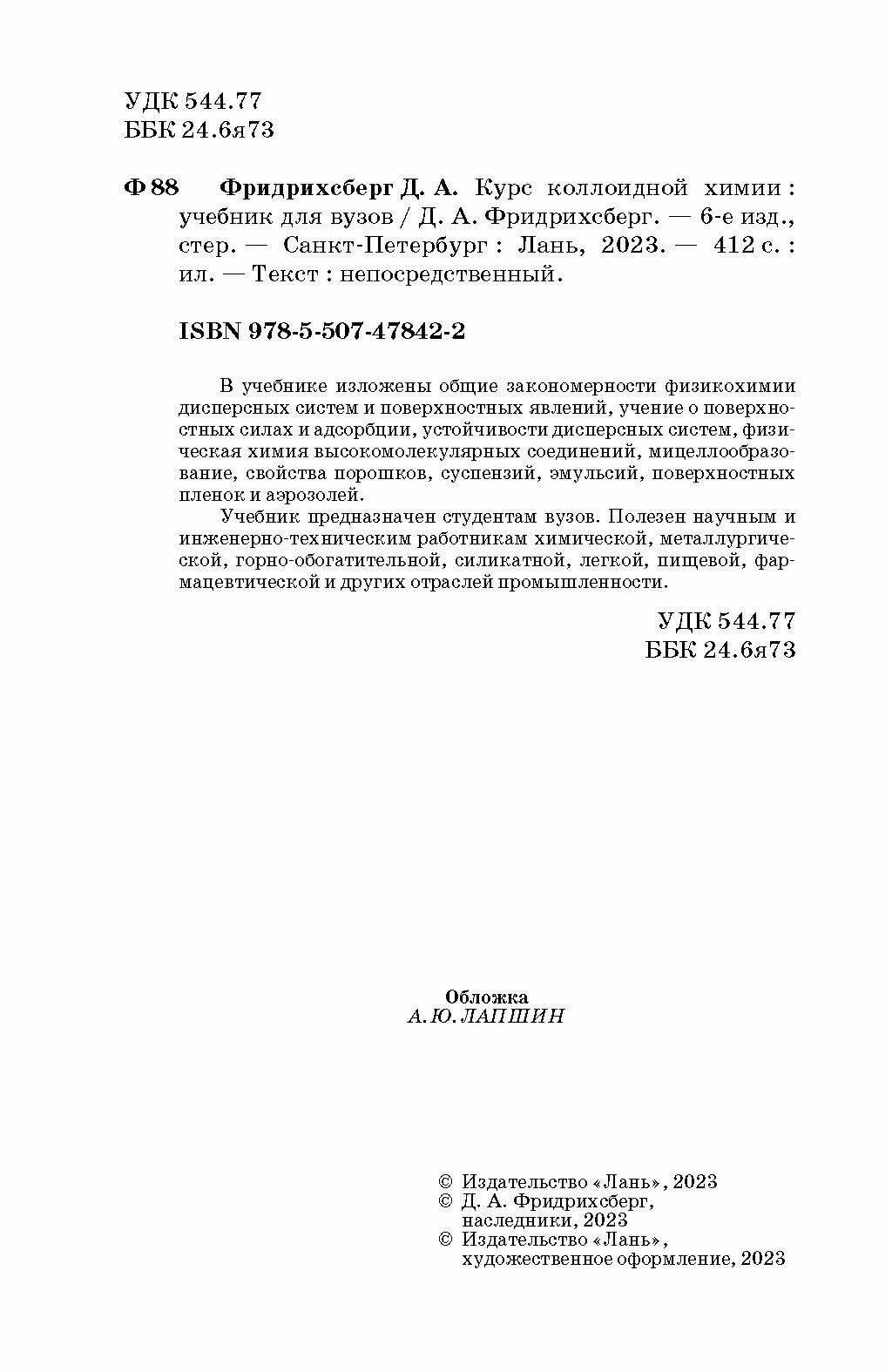 Курс коллоидной химии. Учебник (Фридрихсберг Дмитрий Александрович); Лань, 2023