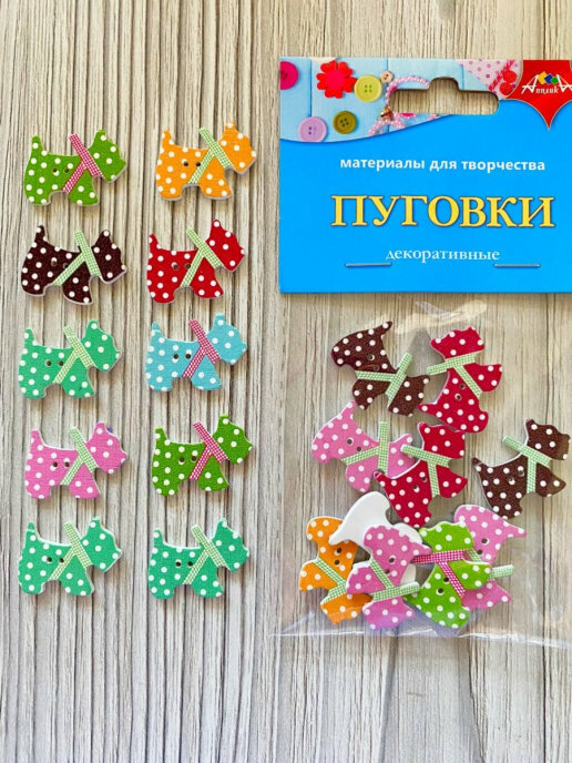 В наборе декоративные пуговицы различных расцветок в форме собачек.