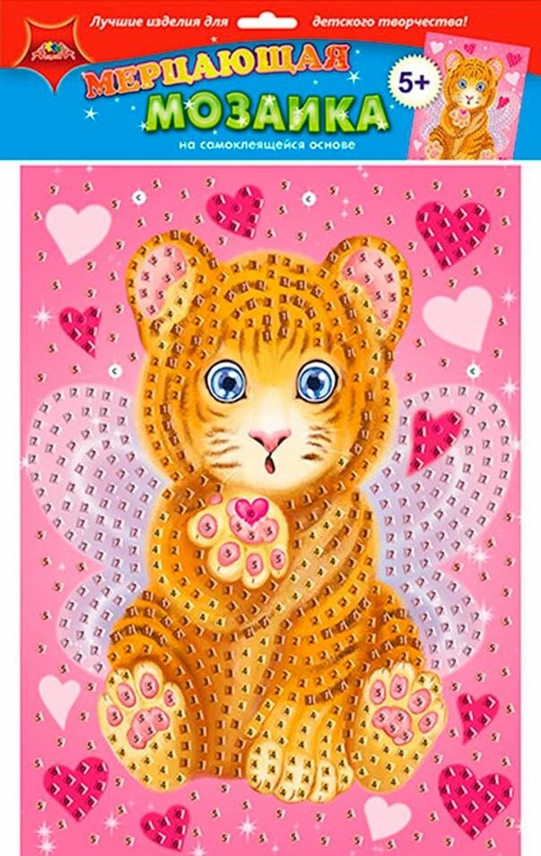 Мозаика мерцающая на самоклеящейся основе "Тигрёнок" (С1573-75); АппликА, 2021