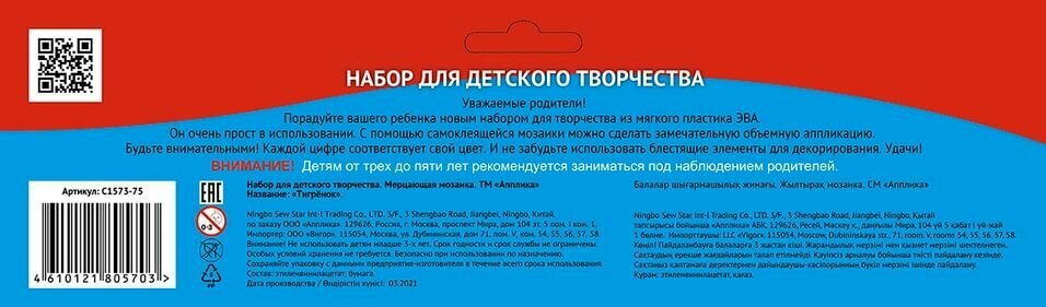 Сервис сравнения цен СкидкаГИД предлагает сравнить цены на товар «Книга: Мозаика мерцающая на самоклеящейся основе "Тигрёнок" (С1573-75); АппликА, 2021»