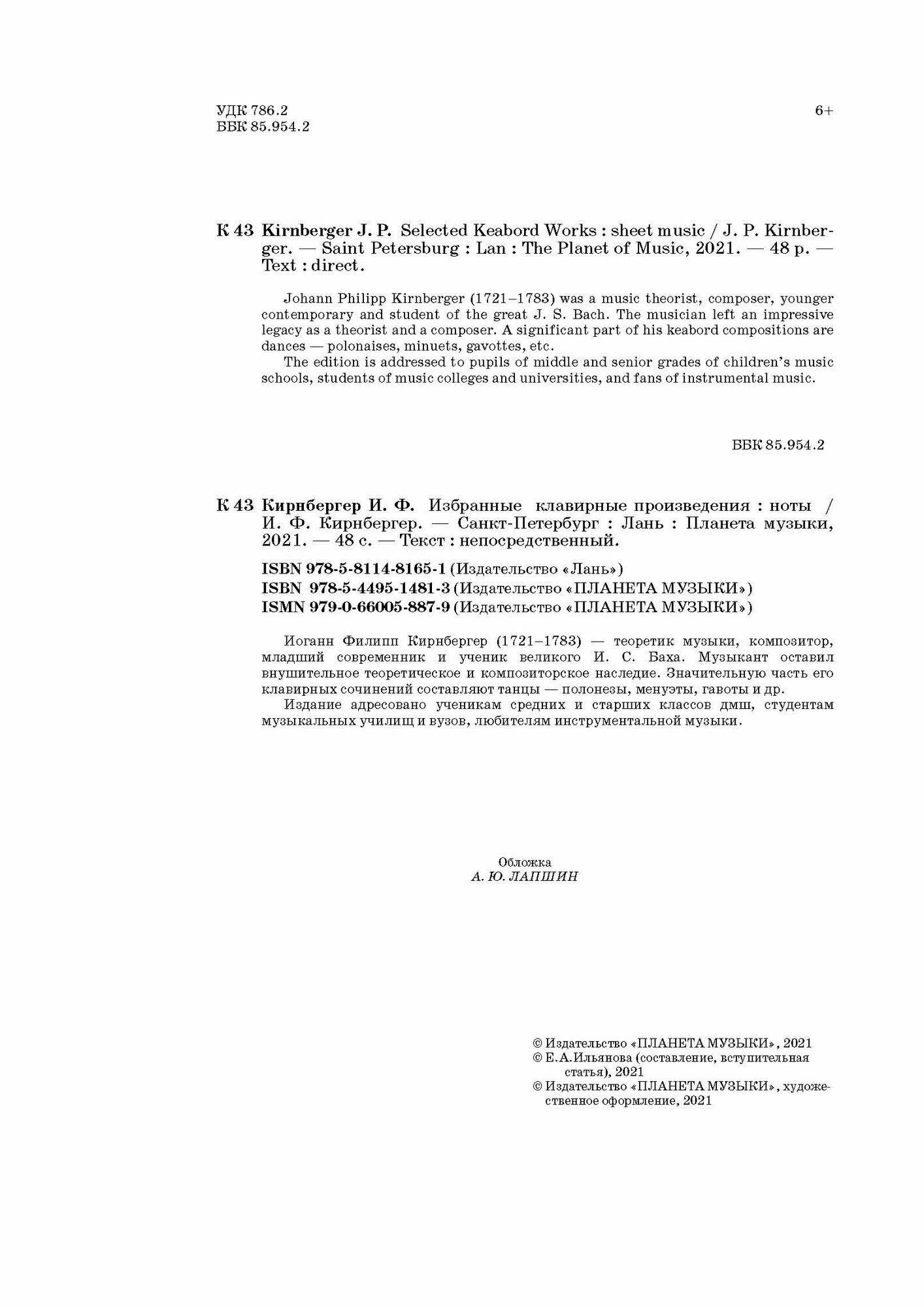 Избранные клавирные произведения. Ноты (Кирнбергер Иоганн Филипп); Планета Музыки, 2021