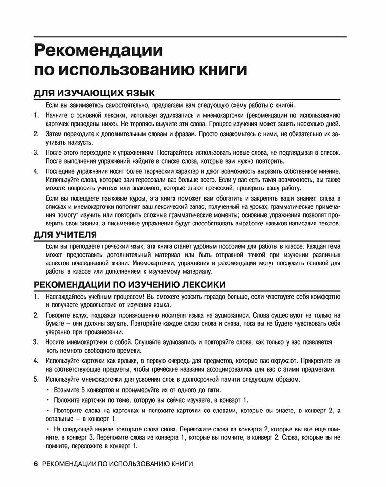 В качестве дополнительного материала в издание включены русско-греческие мнемокарточки и раздел "Подготовка к экзаменам", где можно найти рекомендации по подготовке к тестам и экзаменам по греческому языку.