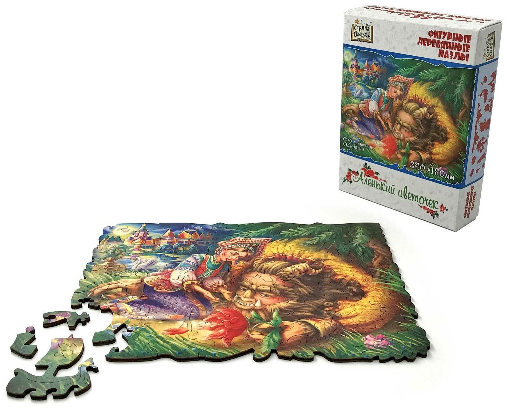 Фигурный деревянный пазл "Страна сказок. Аленький Цветочек" 82 детали (8382); Нескучные игры, 2021