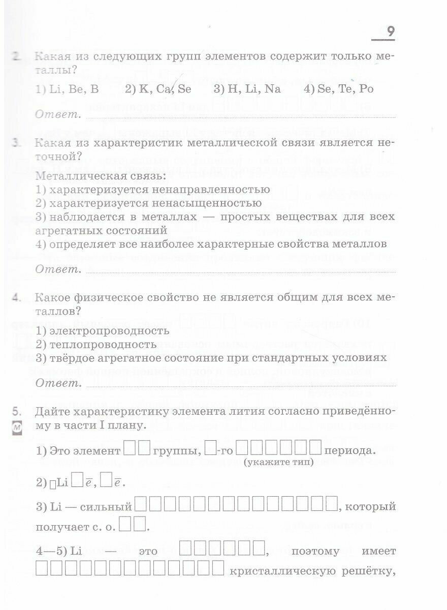 Предлагаемая тетрадь - часть учебного комплекса к учебнику О. С. Габриеляна "Химия. 9 класс". Учебник соответствует Федеральному государственному образовательному стандарту основного общего образования. Также тетрадь может использоваться с учебником, соответствующим Федеральному компоненту государственного образовательного стандарта. Помимо тетради в состав УМК входят электронное приложение к учебнику, методическое пособие и рабочая программа. Специальными знаками отмечены задания, направленные на формирование метапредметных умений (планировать деятельность, выделять различные признаки, сравнивать, классифицировать, устанавливать причинно-следственные связи, преобразовывать информацию и др.) и личностных качеств учеников. 6-е издание, стереотипное.