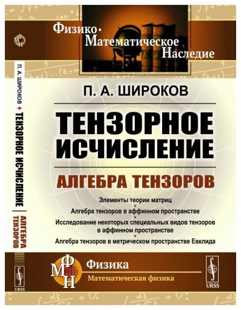 Вниманию читателей предлагается книга, в основу которой автор, выдающийся математик П. А. Широков, положил курс тензорного анализа, читавшийся им в Казанском университете. В книге излагается алгебра тензоров аффинного и метрического пространства. Книга состоит из четырех глав, в первой из которых излагаются элементы теории матриц, во второй — элементы тензорной алгебры в аффинном пространстве, в третьей — некоторые специальные виды тензоров в аффинном пространстве, а в четвертой — основные алгебраические операции над тензорами в метрическом пространстве Евклида. При составлении руководства автор стремился дать по возможности простое изложение, иллюстрируя аналитический материал геометрическими образами. Книга предназначена для студентов старших курсов и аспирантов математических отделений университетов и тех лиц (математиков, физиков, инженеров), которые, не будучи специалистами в геометрии, захотели бы познакомиться с основами тензорного анализа.