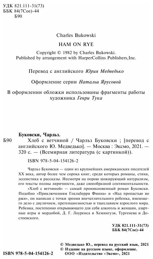Книга: Хлеб с ветчиной (Чарльз Буковски); Эксмо, Редакция 1, 2024