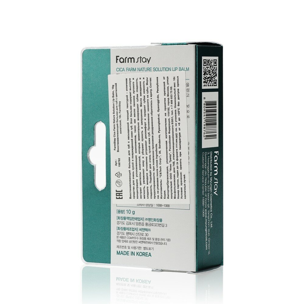 | Полное наименование | FarmStay Восстанавливающий бальзам для губ с центеллой азиатской, 10г FarmStay Cica Farm Solution Lip Balm |