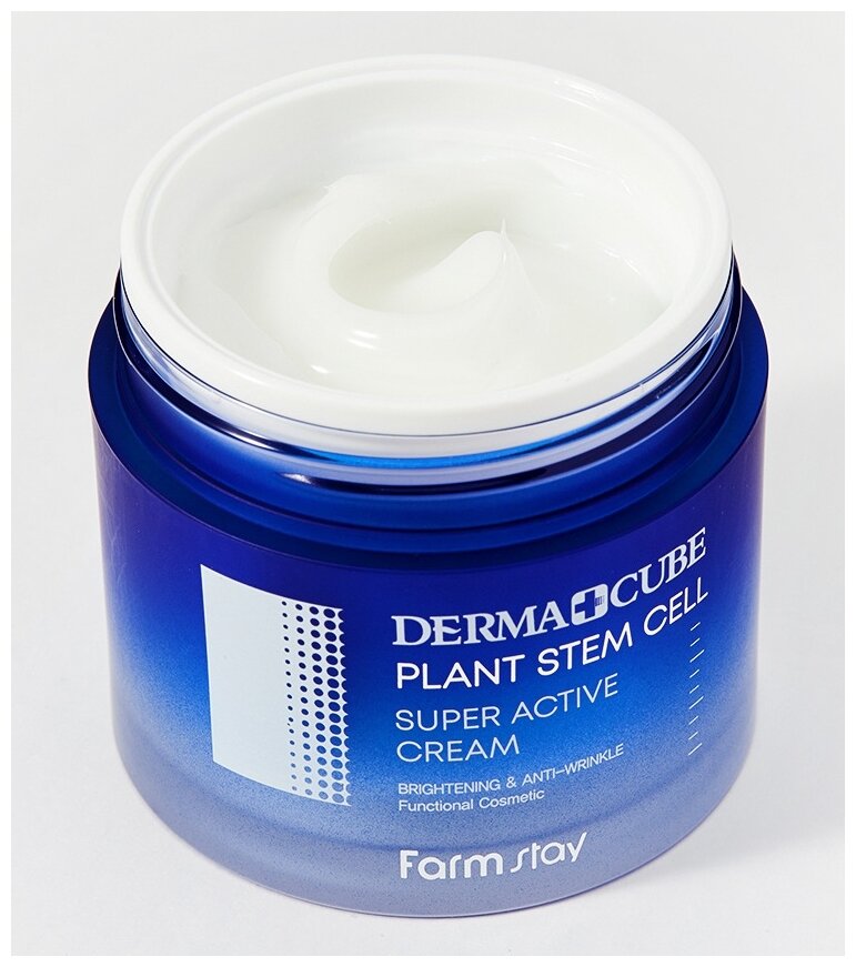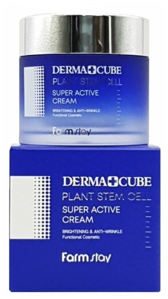 FarmStay Derma Cube Plant Stem Cell Super Active Cream Крем для лица со стволовыми клетками. Помогает осветлить кожу, выравнивает тон лица, уменьшает видимые морщины и предотвратить их дальнейшее появление. Легко наносится и быстро впитывается, не оставляя липкости на коже. Стволовые клетки способны защищать кожу лица от негативной внешней среды, влияя на общее состояние кожи. Крем активно тонизирует, подтягивает кожу, возвращает и сохраняет ее упругость и эластичность кожи, делает кожу более нежной, бархатистой, ухоженной, молодой и свежей. Средство обладает противовоспалительным и успокаивающим действием. Ниацинамид отбеливает кожу, устраняет пигментные пятна, уменьшает проявление веснушек, постакне и других проявлений. Масло лаванды выделяется антибактериальными, противогрибковыми и противовоспалительными особенностями, именно поэтому оно хорошо справляется с несовершенствами кожи, и людям с частыми высыпаниями рекомендуют его использовать. Оно широко известно успокаивающим действием на псориаз, изъязвления и воспаления кожи. Помогает также избавиться от солнечных ожогов, уменьшить отеки и быстро заживить раны. Как пользоватьсяНа последнем уходовом этапе, возьмите необходимое количество средства и равномерно нанесите на все лицо массажными движениями, избегая области вокруг глаз.