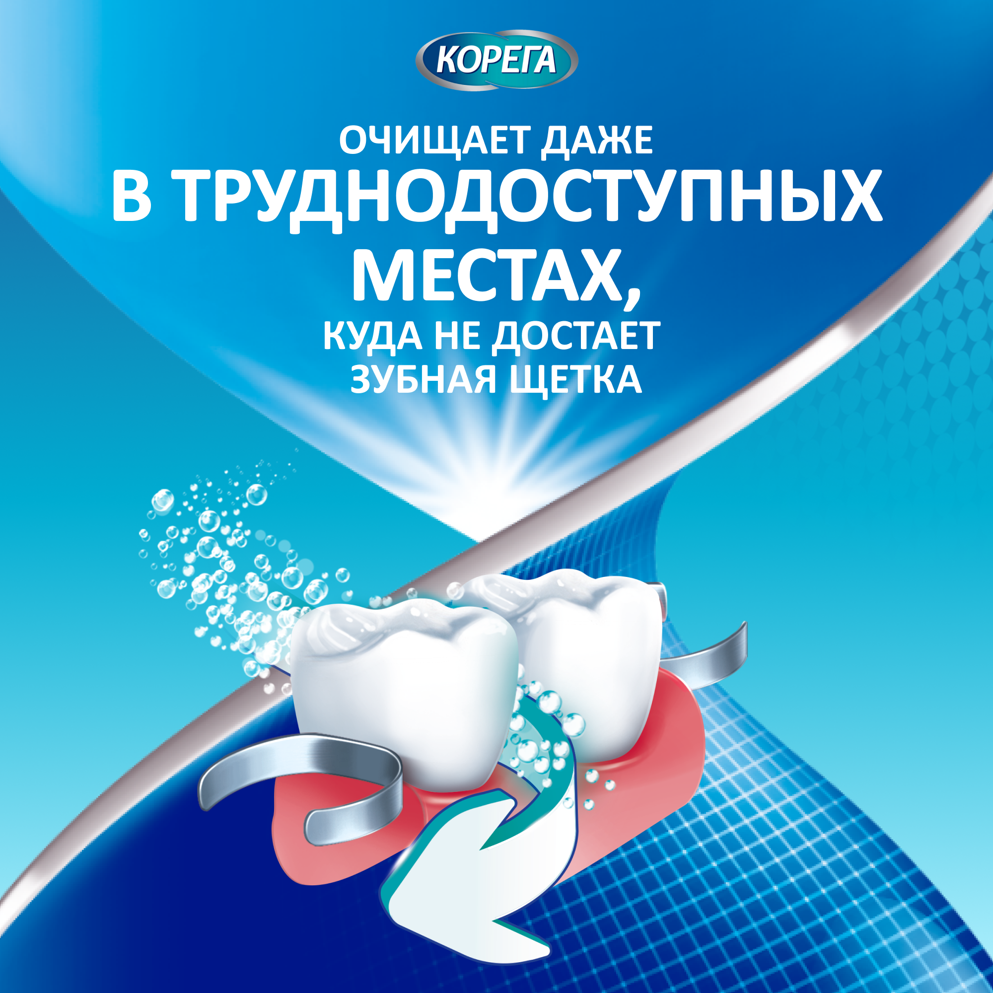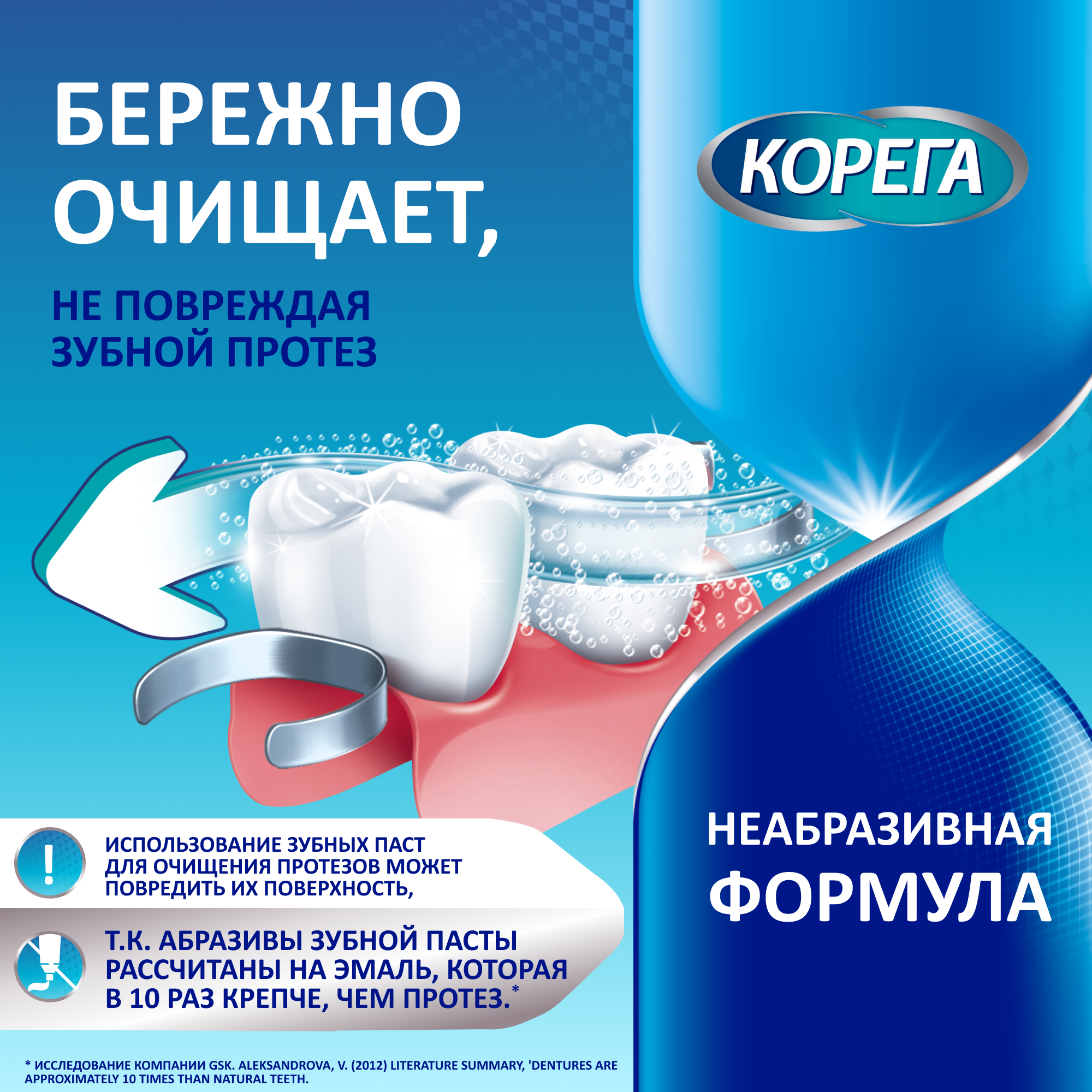 Бренд Корега - это комплекс средств по уходу за зубными протезами, созданный для удобства использования зубных протезов и поддержания здоровья полости рта. Чистота и свежесть полости рта позволяют чувствовать себя уверенней при общении с людьми, поэтому важно понимать, как правильно заботиться о зубных протезах. Поскольку зубные протезы примерно в 10 раз мягче естественных зубов*, наши специализированные средства для очищения зубных протезов имеют неабразивный состав, который на 99,99% уменьшает число бактерий, вызывающих неприятный запах изо рта**, и при правильном использовании помогают удалить налет и стойкие пятна. Вы сможете более свободно общаться с близкими вам людьми и жить более полноценной жизнью. Таблетки для очищения зубных протезов Корега. Таблетки Корега уменьшают число бактерий и удаляют с поверхности протеза сложные загрязнения и налет, при этом они безопасны для регулярного применения, бережно очищают зубной протез, по сравнению с чисткой обычной зубной пастой. Таблетки Корега являются мощным средством, которое бережно очищает зубные протезы, эффективно удаляет бактерии. Использование таблеток Корега обеспечивает свежесть и чистоту ваших зубных протезов. С их помощью вы можете есть, говорить и улыбаться уверенно. Корега Зубные капы и Ретейнеры с технологией Crystal Clear Мягкая формула, которая не содержит абразивов уничтожает бактерии, удаляет пятна, восстанавливает естественный цвет и помогает поддерживать чистоту вашей съёмной ортодонтической конструкции.
