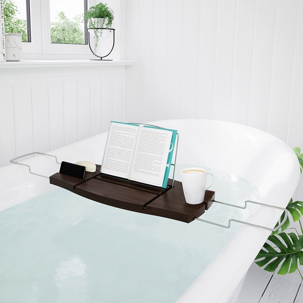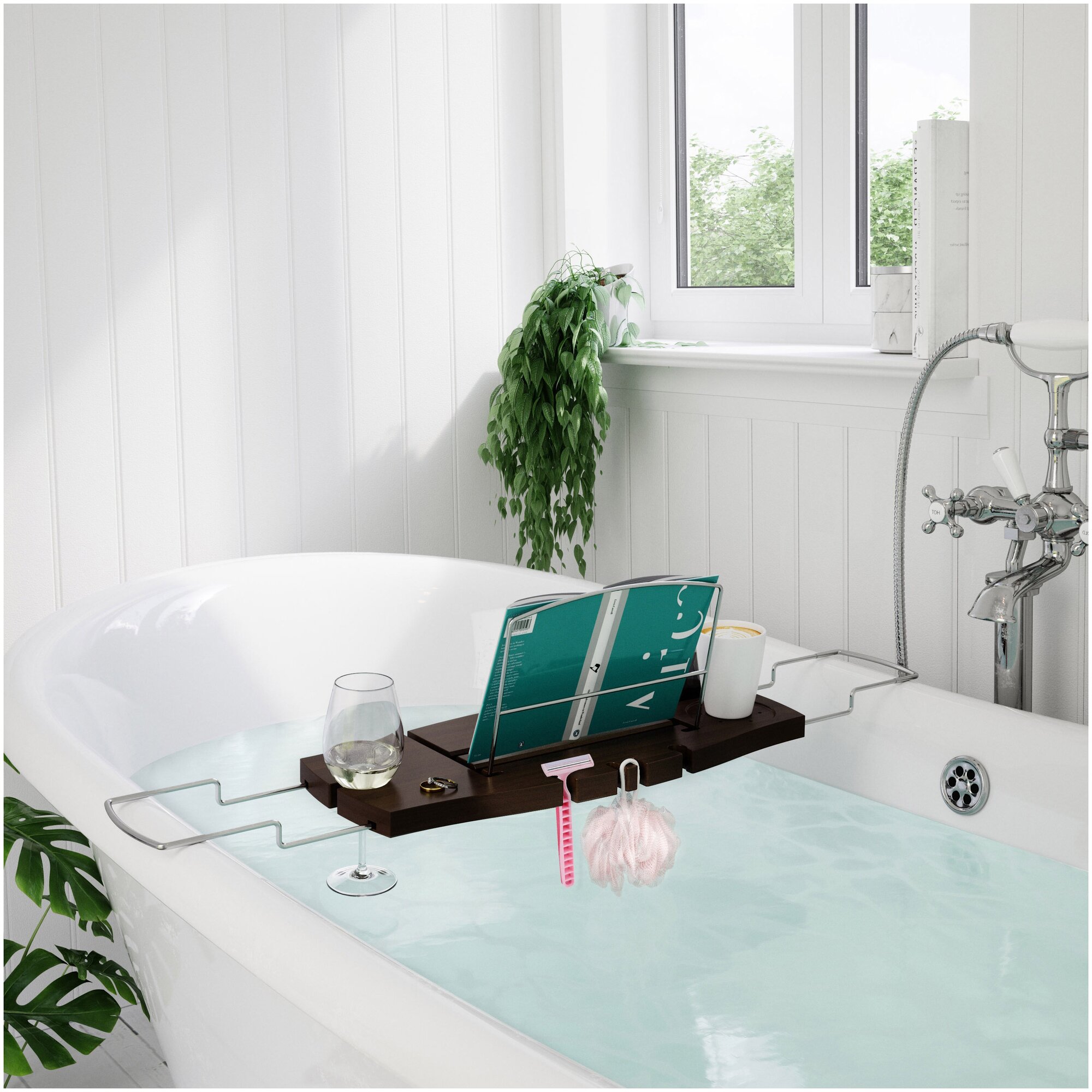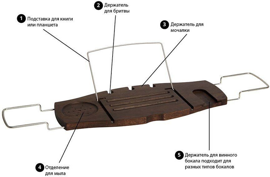 Что может быть лучше, чем расслабиться после рабочего дня? Для этого совершенно не обязательно посещать спа? салон. Его можно устроить дома. Дизайнеры Umbra позаботились, чтобы во время принятия ванны вы чувствовали себя максимально комфортно. Полка оснащена встроенной мыльницей, прорезью для бокала с вином, подставкой для книги или iPad, отверстием для телефона и держателями для бритвенного станка и мочалки. Аксессуар выполнен из экологически чистого бамбука, который отличается стойкостью к повышенной влажности. Благодаря выдвижным хромированным кронштейнам полку можно устанавливать на любую ванную шириной до 94 см. Бренд: Umbra (Канада) Материал: бамбук, металл Размер деревянной части: 48,5 х 22 см Размер полки с держателями: 21 х 3 х 70 см, раздвигается до 102 см