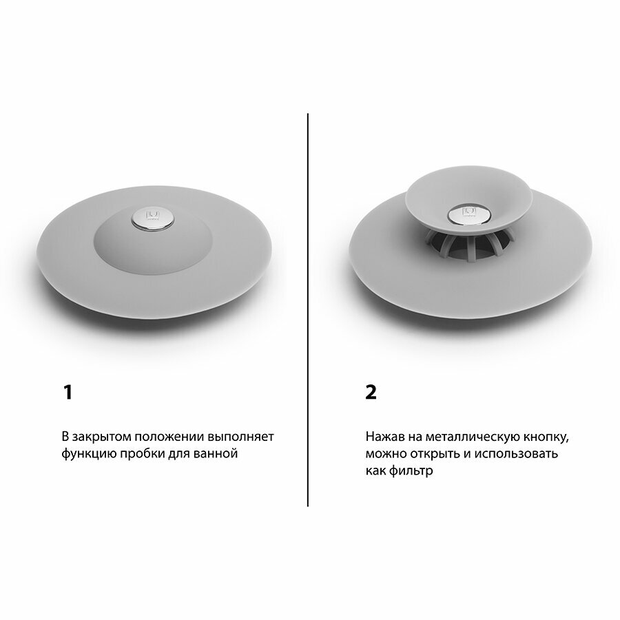 Если вы думали, что ещё удобнее сделать фильтр для слива невозможно, вы ошибались! Нажмите на металлическую кнопку в центре, чтобы вода сливалась через фильтр, задерживая в нём мусор. Нажмите на резиновые крылышки вокруг кнопки, и фильтр закроет слив, чтобы вы смогли наполнить ванну. Сочетается с другими аксессуарами из коллекции Flex.