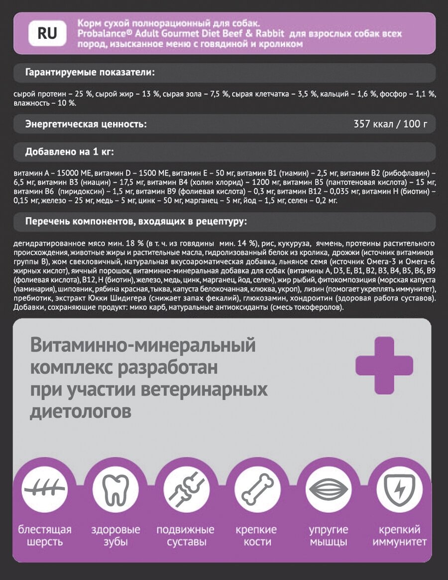 На сегодняшний день товар «Сухой корм для собак Probalance Adult Gourmet Diet с говядиной и кроликом 15кг» можно купить с кешбеком в 1 магазине: Яндекс.Маркет