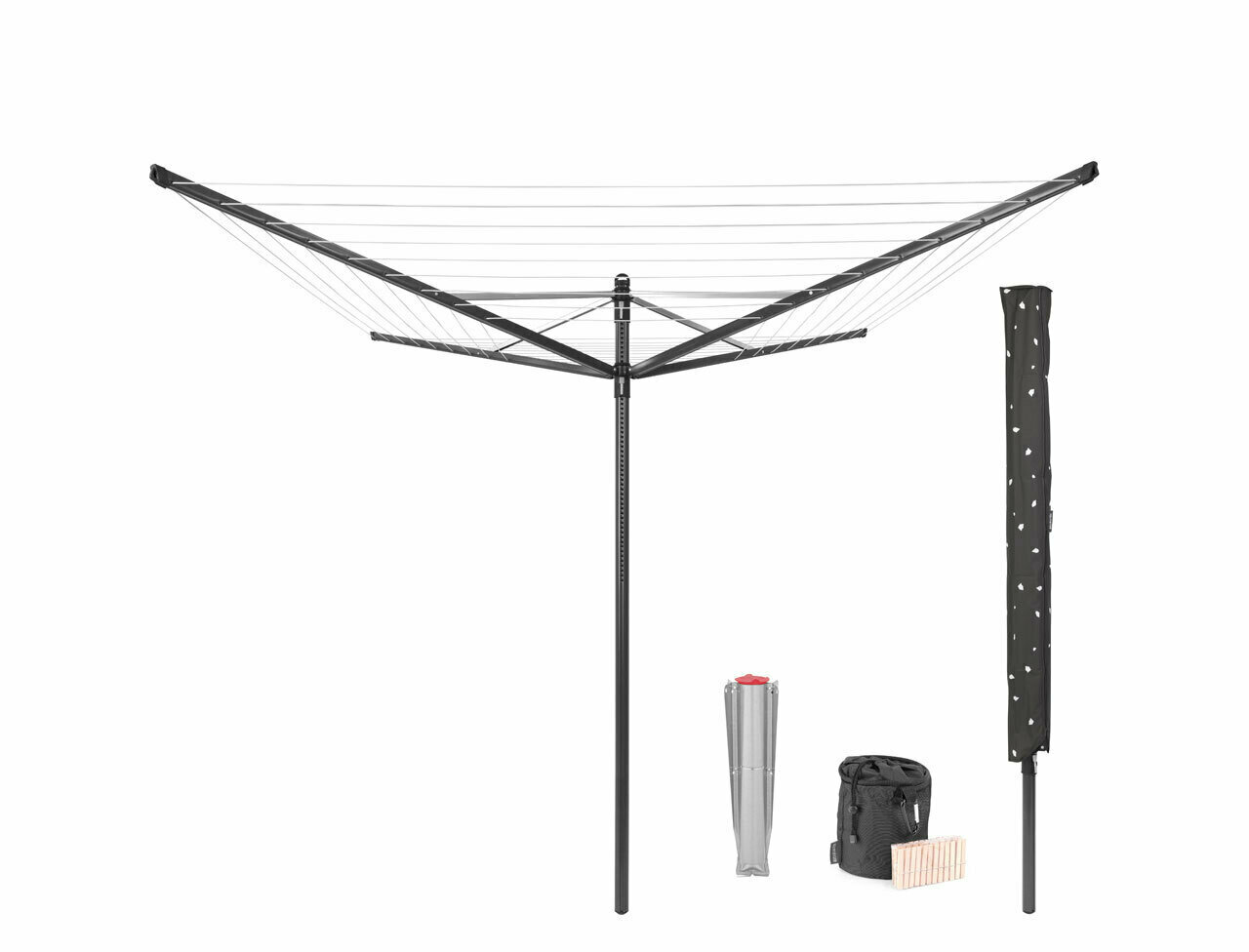 Сушилка для белья Brabantia "Lift-O-Matic" уличная с чехлом мешком прищепками антрацит 50м 290503