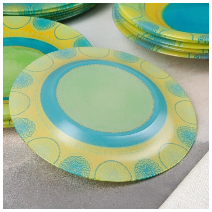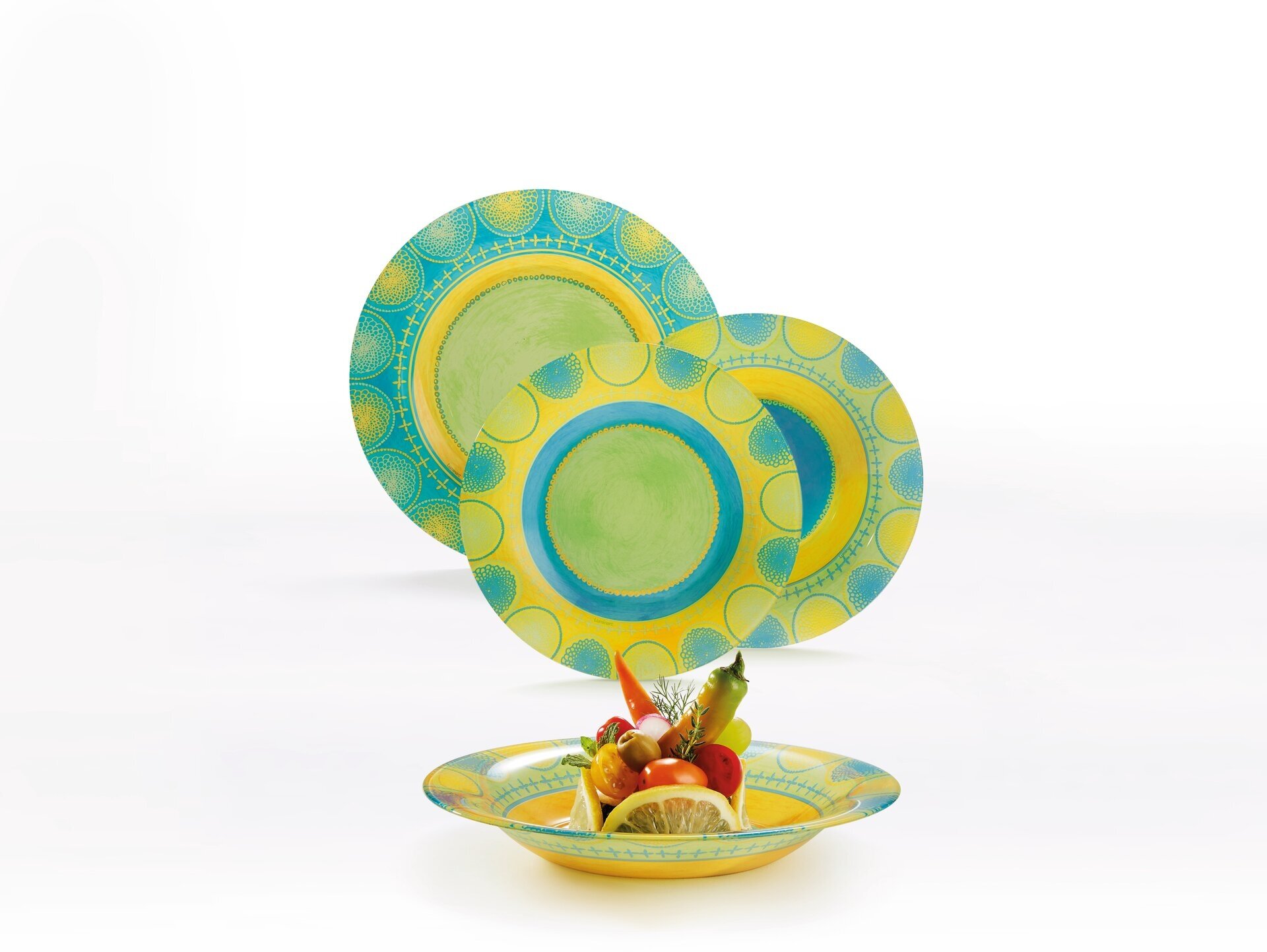 | Состав набора | Тарелка десертная 19,5см - 6шт; тарелка глубокая 21,5см - 6шт; тарелка обеденная 25см - 6шт. |