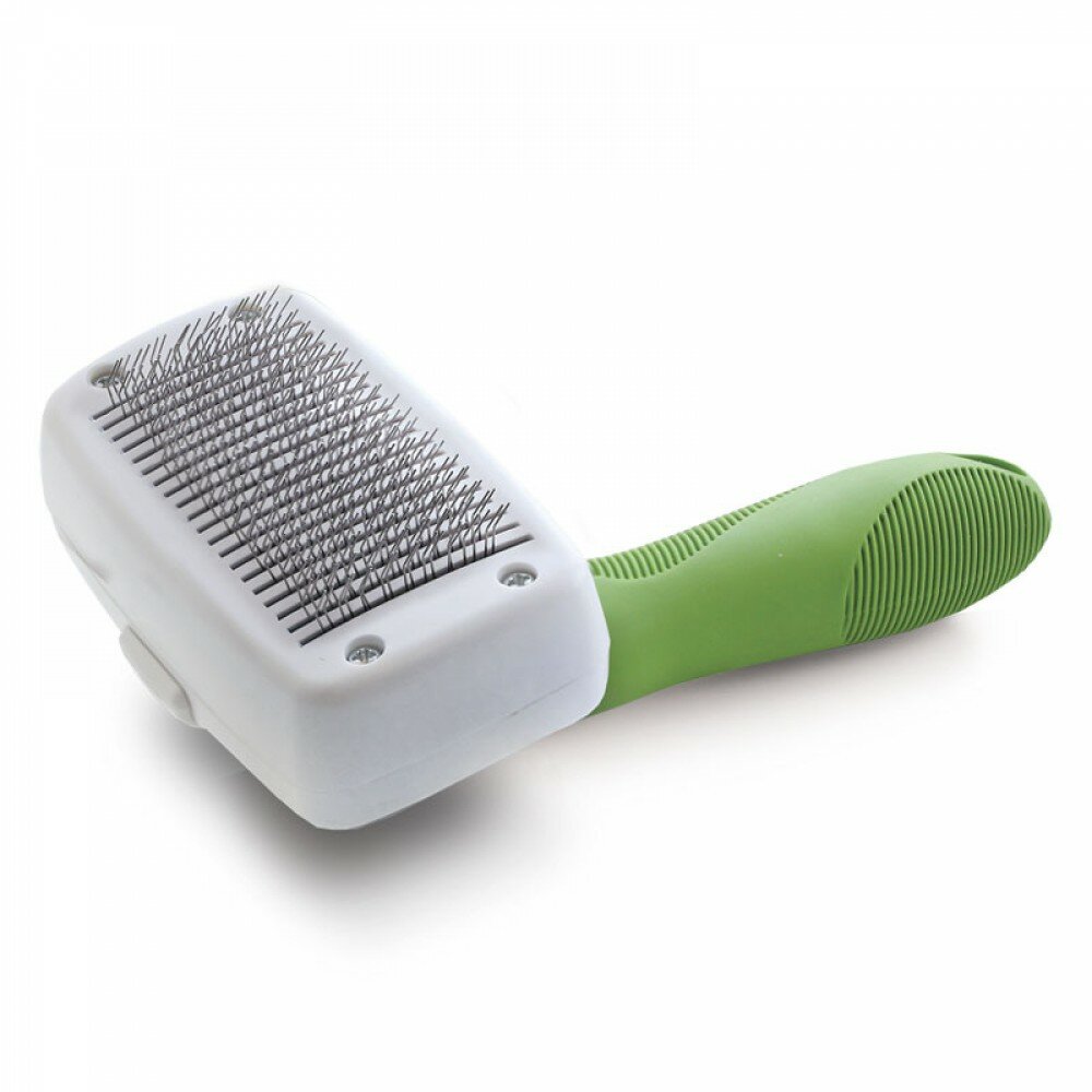 Щетка-пуходерка самоочищающаяся Премиум M, 98*177мм (блистер) Такая щетка-пуходерка - это не только полезный, но и максимально удобный аксессуар для ухода за животными. Продуманная до мелочей, она отлично удаляет старую шерсть и подшерсток, стимулирует волосяные луковицы, избавляет от колтунов и придает шерсти здоровый вид и дополнительный объем. Пуходерка премиального качества имеет частую тонкую металлическую щетину и удобную систему самоочистки: таким образом, одним нажатием кнопки можно значительно упростить и ускорить процесс вычесывания. Благодаря эргономичной ручке изделие удобно лежит в руке, а оптимальный размер рабочей поверхности позволяет добиться максимальной эффективности при минимальных габаритах. Размер изделия: 177*98*65мм. Размер рабочей поверхности: 98*50мм. Изделие упаковано в блистер (ручка открыта). Артикул: Торговая марка: Triol Страна: Китай Размеры: 98х177мм Материал/состав: пластик, резина, металл Количество в упаковке 1 шт. Количество в коробке: 20 шт.