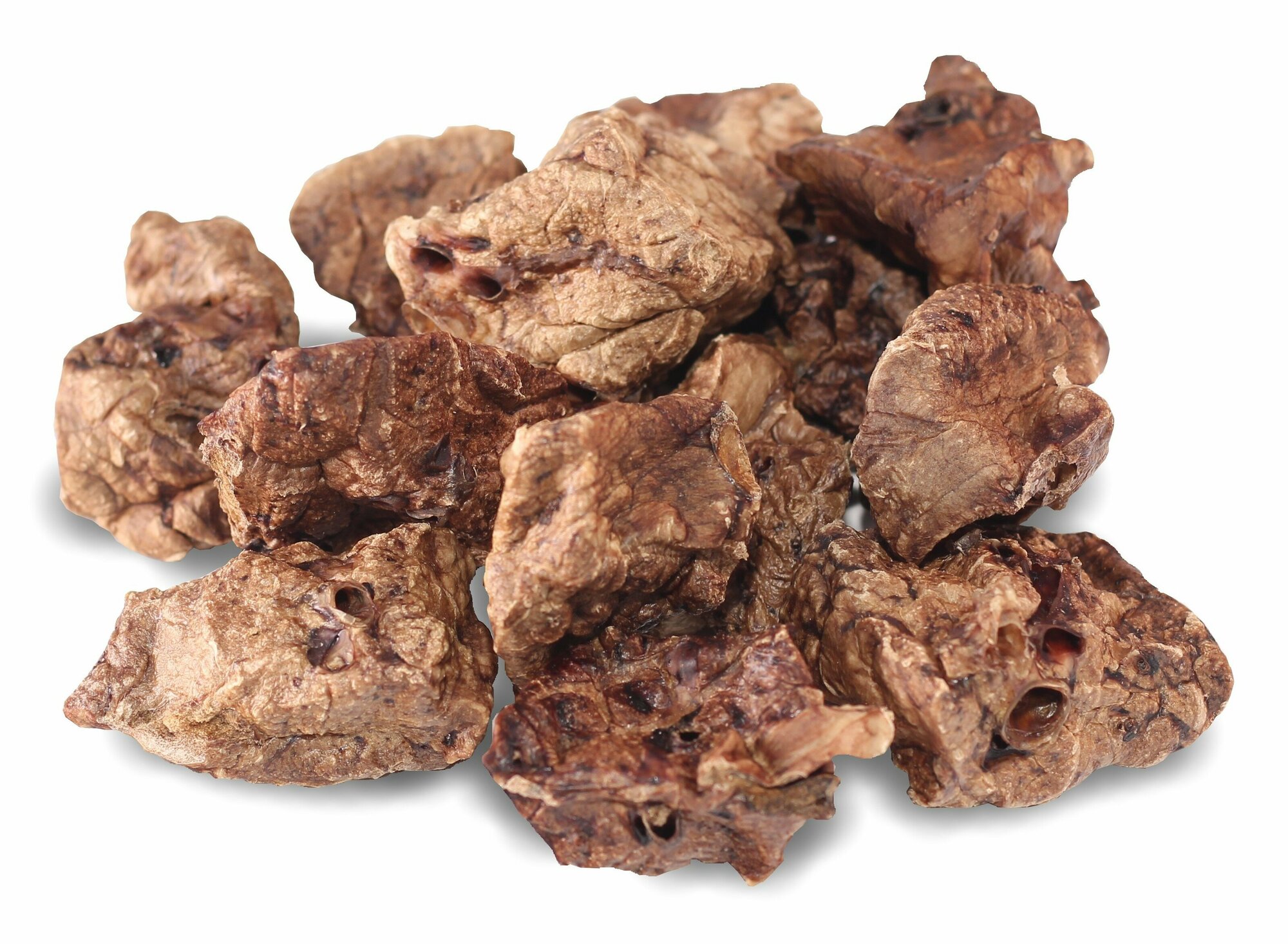 Кусочки высушенного говяжьего легкого приготовлены по щадящей технологии промывки, что позволяют сохранить всю насыщенность кровью и другими питательными веществами, благодаря этому легкое имеет натуральный мясной вид и максимально богато полезными компонентами. Высокое содержание микроэлементов и соединительной ткани дополняет удовольствие собаки от нежного лакомства. Легкие очень вкусны, малокалорийны и замечательно усваиваются организмом. Легкие содержат практически такой же набор витаминов, как и мясо, но зато гораздо менее жирные. Оказывают положительное воздействие на состояние кожи, шерсти и общий обмен веществ. Кусочки очень удобно использовать в качестве поощрения при дрессуре, и просто на прогулках. Для собак всех пород и возрастов. Особенно рекомендуется для собак с неполной зубной формулой и возрастными изменениями зубочелюстного аппарата. Благодаря вкусовым качествам и воздушной структуре является одним из самых любимых лакомств для наших четвероногих друзей.Составлегкое говяжье.Пищевая ценностьв 100 г: белки 67 г, жиры 19 г, зола 4 г, влага 10 г. Энергетическая ценность на 100 г: 439 ккал.Срок годности (мес)18Условия храненияХранить при температуре от +4 В°С до +25 В°С и относительной влажности не более 75%.