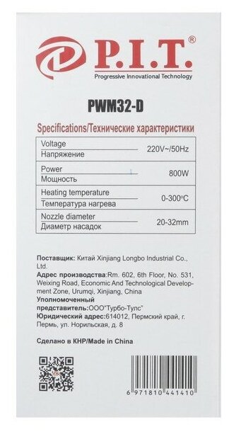 Паяльник P.I.T. PWM32-D - мощный и надежный инструмент для выполнения точной и качественной пайки. Этот прибор станет незаменимым помощником как для профессионалов, так и для любителей, работающих в области электроники, ремонта электрооборудования и моделирования.