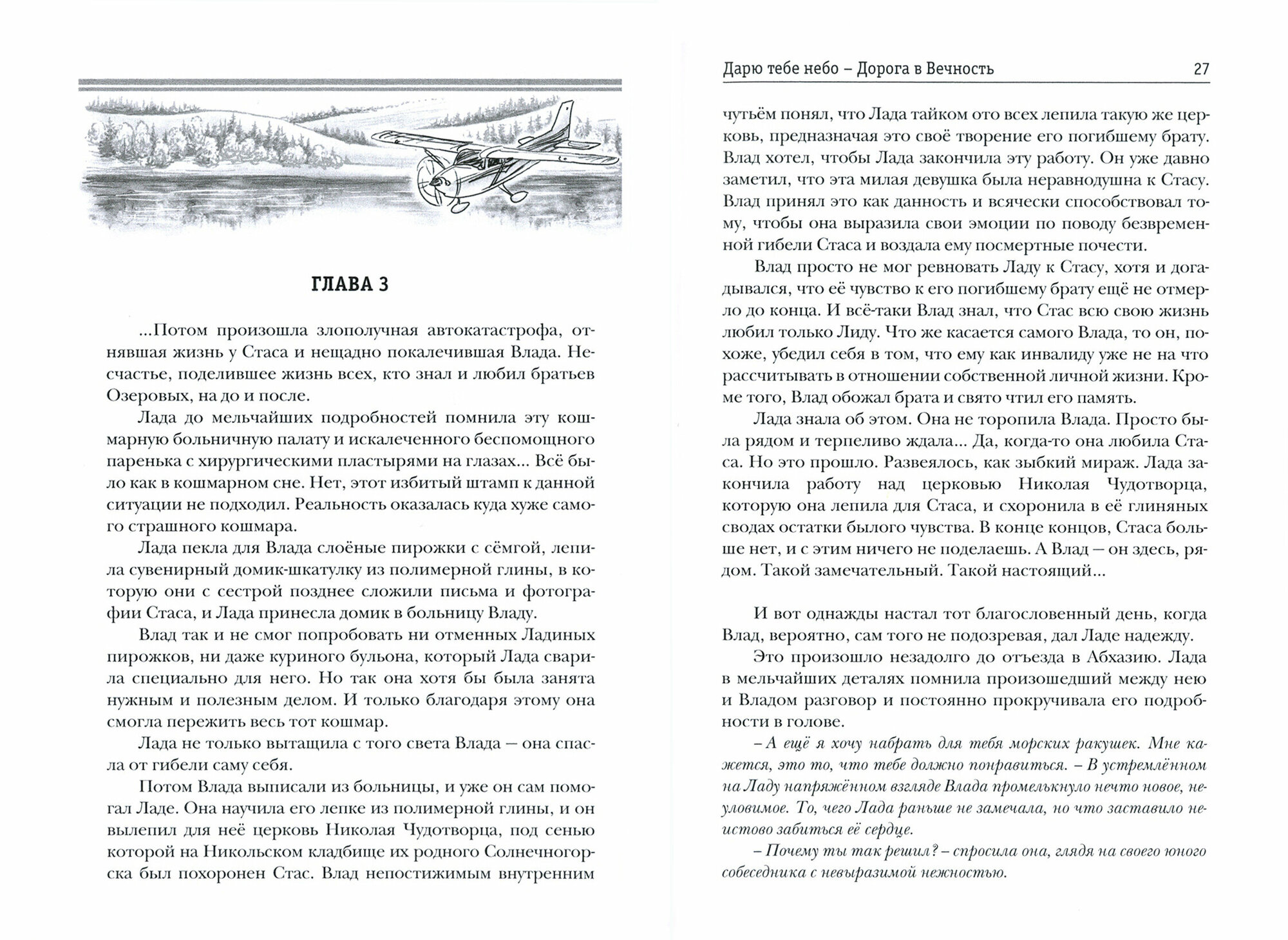 «Жизнь коротка. Важно успеть озарить её светом!» – такое жизненное кредо завещал ему погибший брат. Ради их общей мечты – построить для родителей дом на берегу озера – Владислав, чудом оставшийся в живых после автокатастрофы, но почти ослепший, упорно работает над архитектурным проектом. И вопреки всем запретам и препятствиям продолжает надеяться на то, что когда-нибудь окажется за штурвалом самолёта! Ведь он не одинок в своих устремлениях – Лада всегда рядом и не теряет надежды вернуть ему зрение. И она точно знает, что в её силах осуществить мечту любимого подняться в небо. Сумеют ли эти двое преодолеть все барьеры, воплотить в жизнь свои желания и найти путь друг к другу?