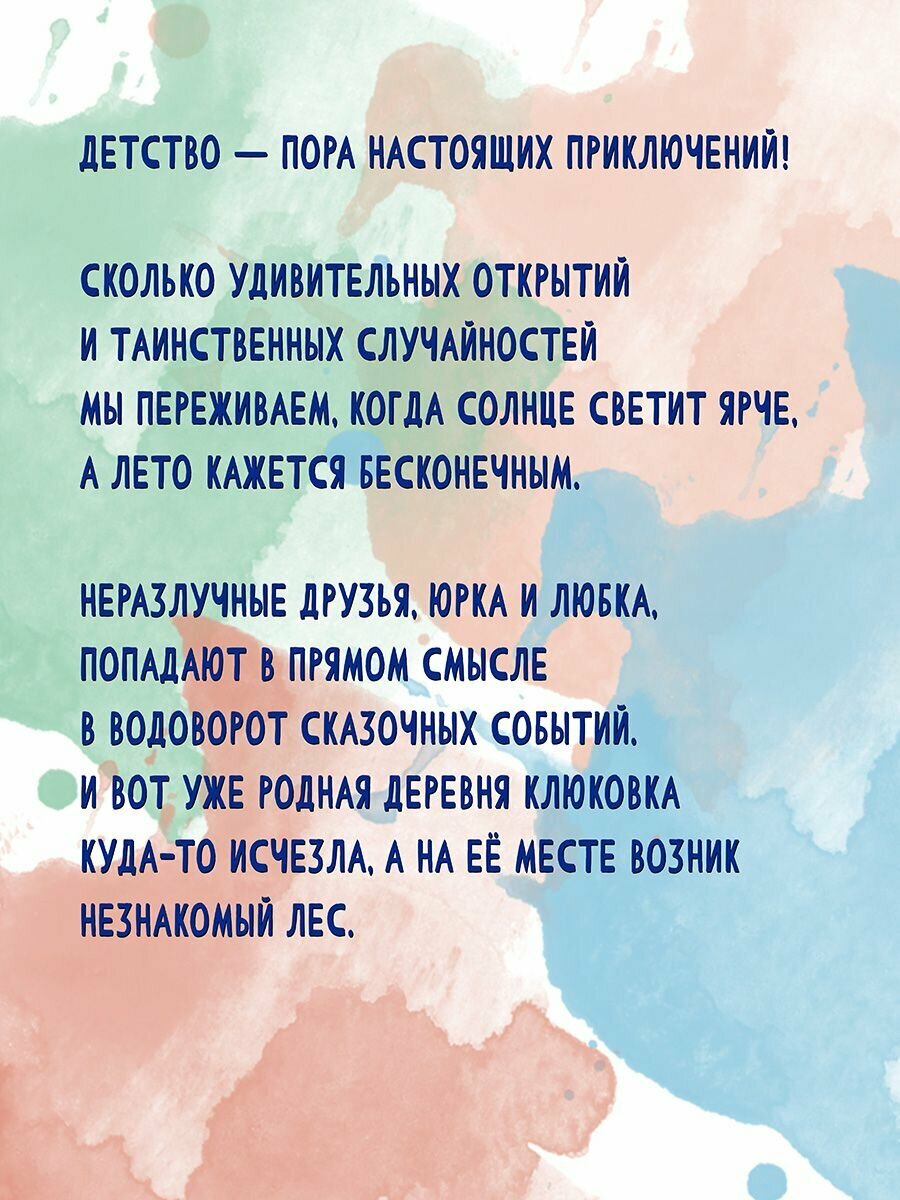 Детство – пора настоящих приключений! Сколько удивительных открытий и таинственных случайностей мы переживаем, когда солнце светит ярче, а лето кажется бесконечным? Неразлучные друзья, Юрка и Любка, попадают в прямом смысле в водоворот сказочных событий. И вот уже родная деревня Клюковка куда-то исчезла, а на её месте возник незнакомый лес. Куда же приведет их извилистая тропа? И почему над ними так неистово сгущаются черные тучи? И что за странное слово – Предлугоморье..?