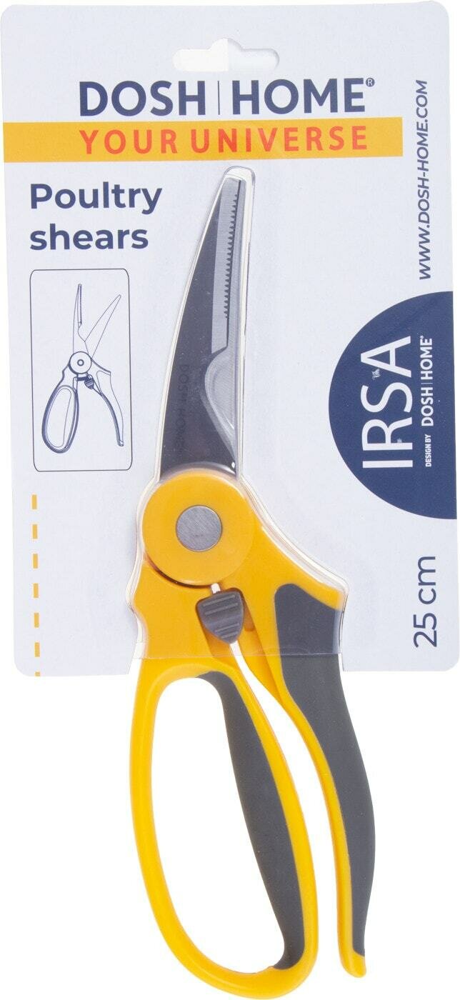 Незаменимый кухонный аксессуар – ножницы для разделки птицы. Ножницы для птицы Dosh | Home IRSA изготовлены из высококачественной нержавеющей стали, прочного пластика и термопластичного каучука. Отлично подходят для порцевания всех видов мяса птицы и дичи. Можно использовать как секатор во флористике, но нельзя мыть в посудомоечной машине.