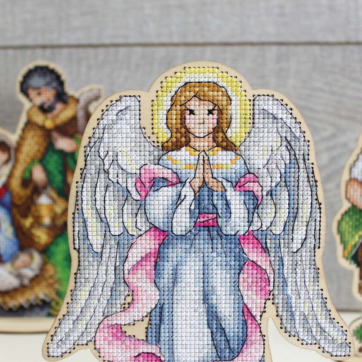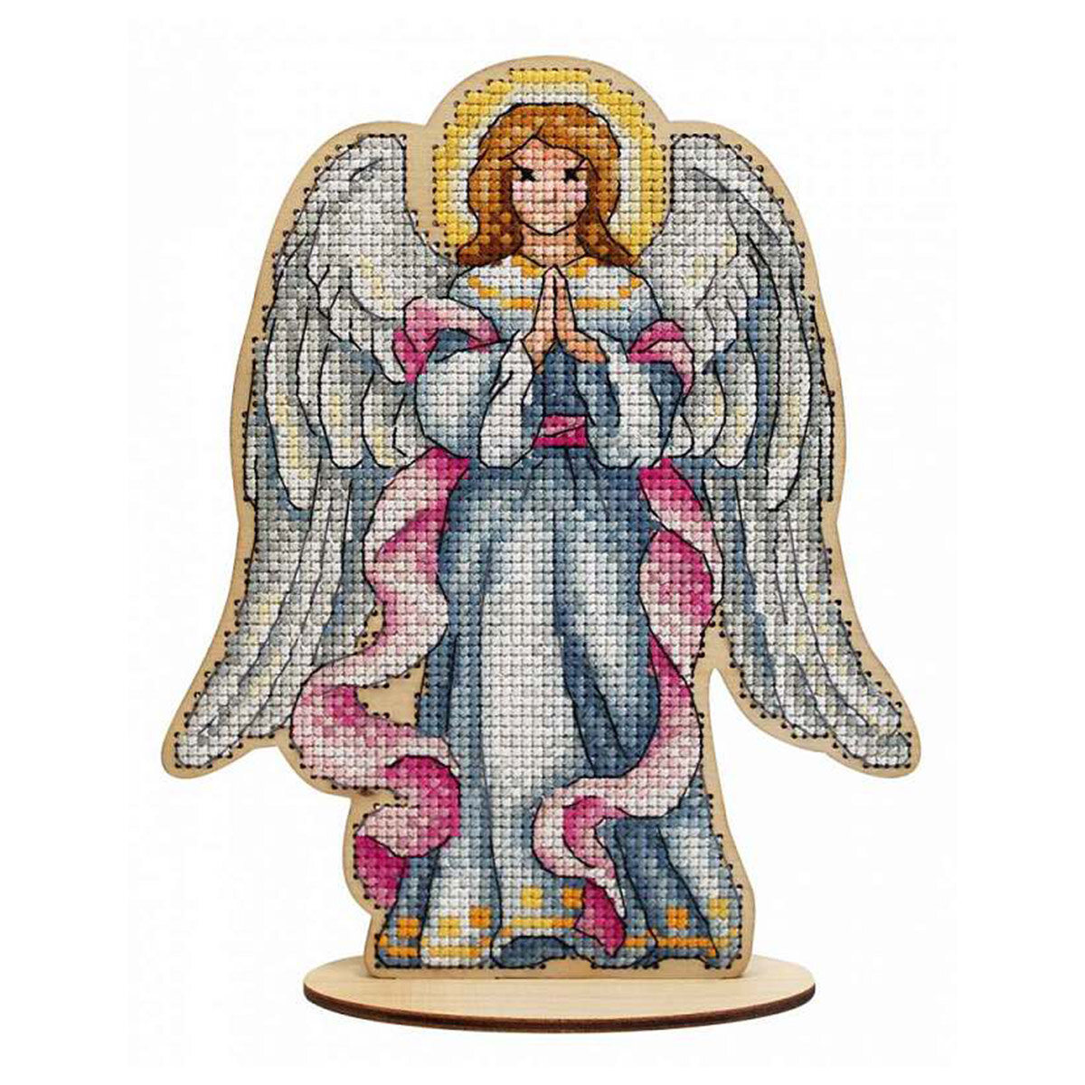 Новинка от бренда 'МП Студия' – набор для вышивания на деревянной основе 'Рождественский ангел'. Чтобы создать такой сувенир, не потребуются даже пяльцы, достаточно владеть техникой 'крест' и точно следовать инструкции. Когда вышивка будет готова, соберите детали подставки, и у вас получится оригинальная поделка! Основа из фанеры не требует обязательной обработки. Если хотите, чтобы сувенир стал ярче, декорируйте его на свой вкус: распишите, покройте лаком. Внимание: дождитесь, пока покрытие полностью высохнет, чтобы не повредить роспись и не испортить нитки.