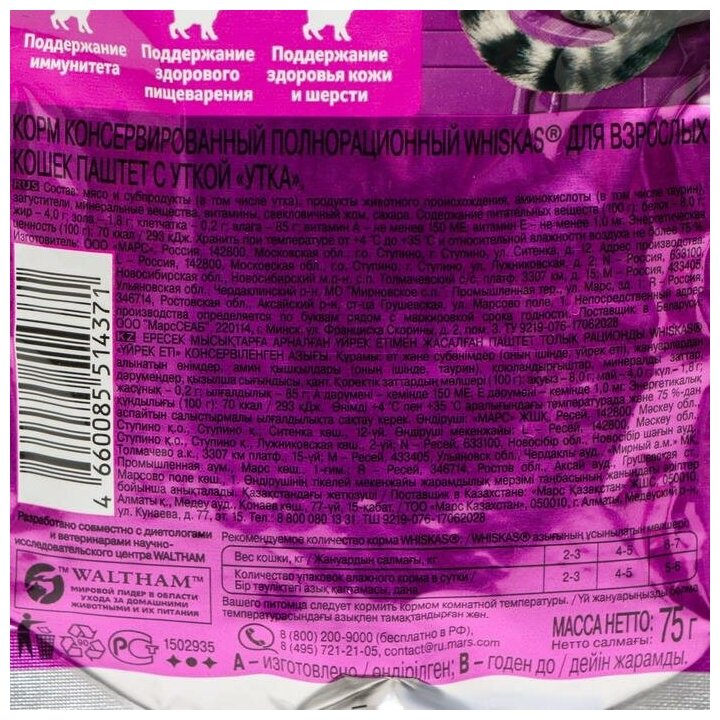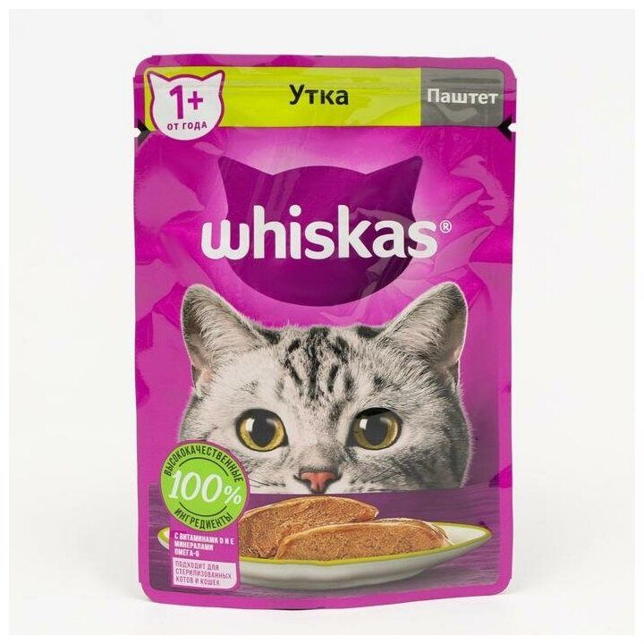 Корм для кошек Whiskas паштет с уткой 75 гр