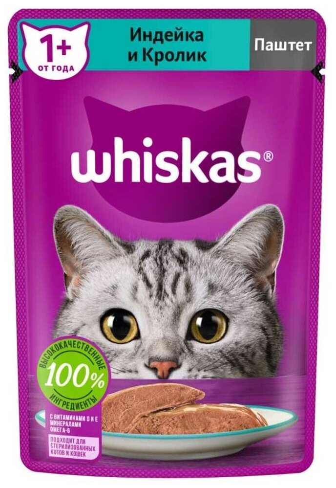 Это сбалансированный рацион, приготовленный именно так, как любит ваша кошка. Аппетитный паштет с подарит вашей любимице настоящее удовольствие. Рацион Whiskas® содержит все необходимое, чтобы еда вашей кошки была не только вкусной, но и полезной.