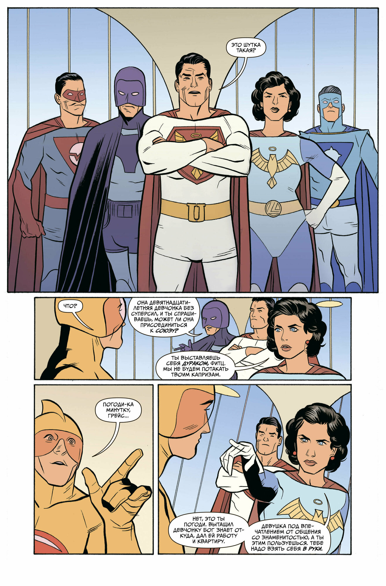 Первый том знаменитого комикса от Марка Миллара теперь можно почитать и на русском языке. Сюжет повествует о семье супергероев, которая уже 80 лет аки боги приглядывает за человечеством. Но если старшие супергерои придерживаются строгого морально-этического курса, то младшие не чужды поддаться низменным инстинктам. Именно на этом противоборстве отцов и детей и завязан главный конфликт произведения. Комикс чем-то напоминает "Пацанов", только без откровенной жести и чернухи. К сожалению, он не так популярен у нас в России как те же "The boys". Отвратительно снятый и закрытый после первого сезона сериал также не пошел на пользу в этом плане. Однако произведение достойное, и как минимум с первым томом я советую ознакомиться.