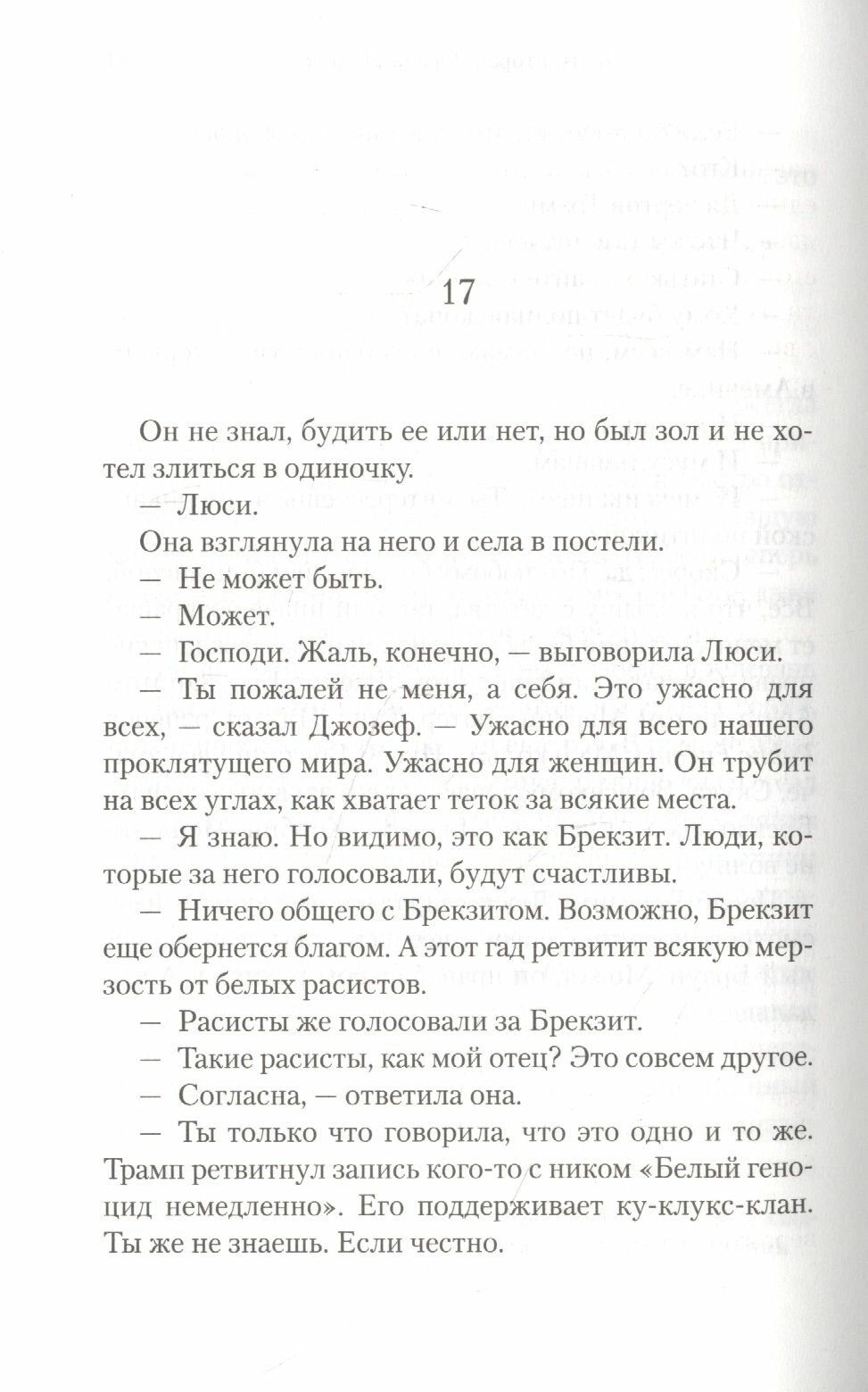 Размеренная и задумчивая история любви двух зрелых людей. Белая героиня-училка - зрелая в силу возраста и рода занятий, темнокожий 20-летний герой - в силу образа мыслей и действий. Несмотря на многие различия, всё у них сложится, и это очень приятно. Понравились тонкий юмор, наблюдения человеческой натуры и точная её передача в эдаком интеллектуальном, но не заумствующем стиле. Бонус для знатоков и любителей - рассуждения о Брекзите с разных точек зрения.