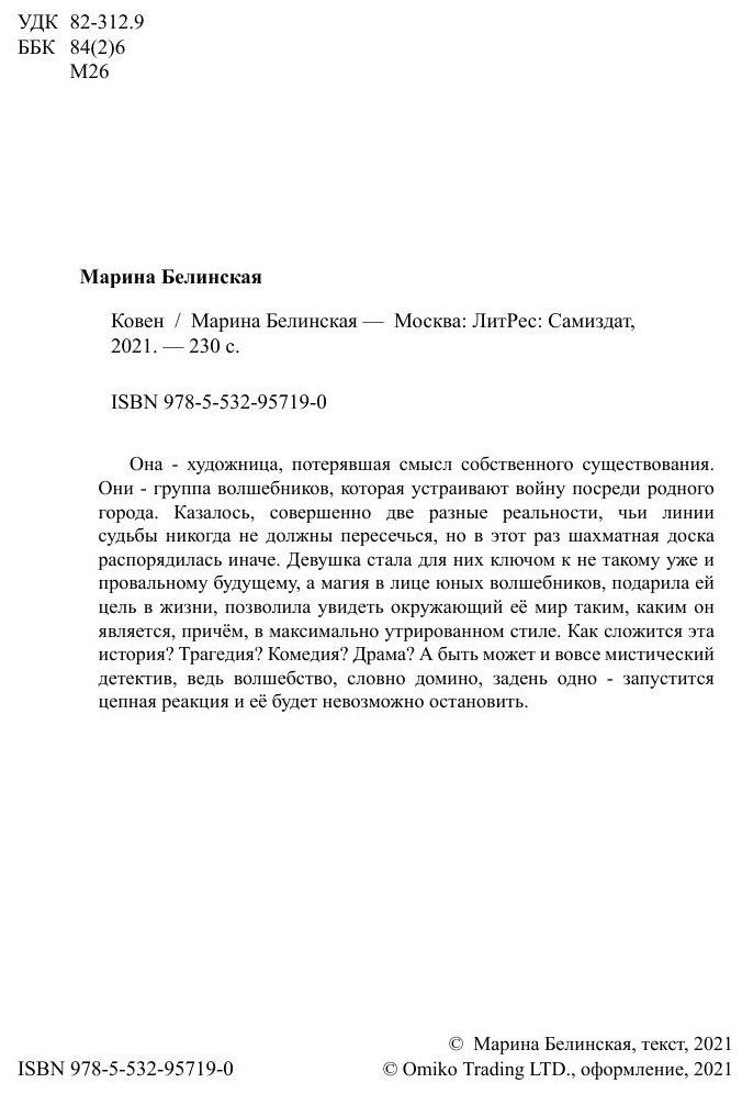 Книга: Ковен (Марина Белинская); Автор, 2021