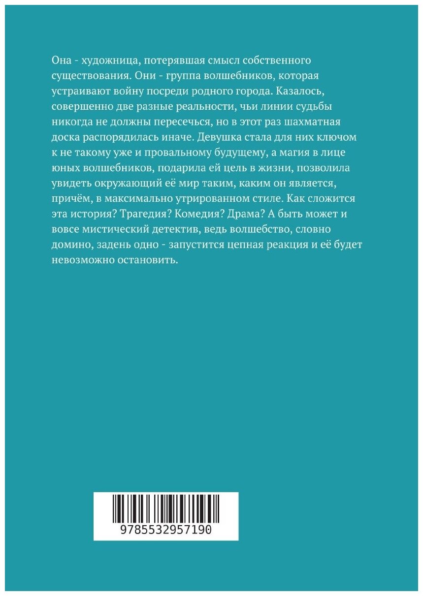 Она – художница, потерявшая смысл собственного существования. Они – группа волшебников, которая устраивают войну посреди родного города. Казалось, совершенно две разные реальности, чьи линии судьбы никогда не должны пересечься, но в этот раз шахматная доска распорядилась иначе. Девушка стала для них ключом к не такому уже и провальному будущему, а магия в лице юных волшебников, подарила ей цель в жизни, позволила увидеть окружающий её мир таким, каким он является, причём, в максимально утрированном стиле. Как сложится эта история? Трагедия? Комедия? Драма? А быть может и вовсе мистический детектив, ведь волшебство, словно домино, задень одно – запустится цепная реакция и её будет невозможно остановить.