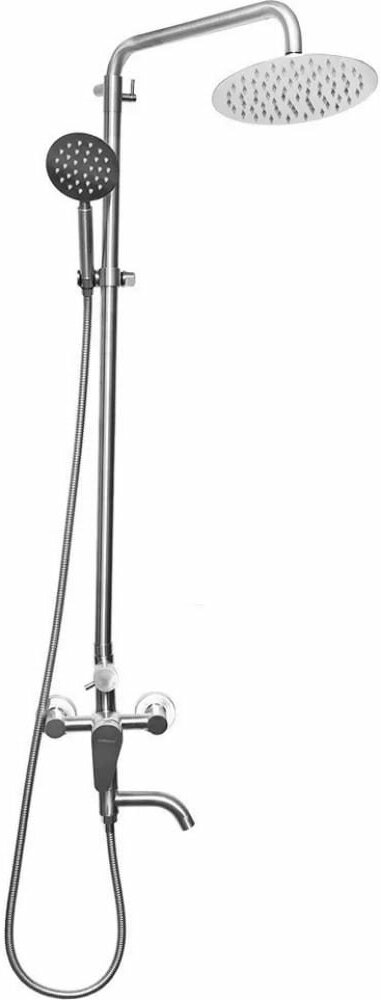 | Комплектация | верхний душ, держатель, штанга, смеситель (нержавеющая сталь), душевой шланг, керамический поворотный переключатель, керамический картридж, лейка ручная, эксцентрики, излив (поворотный), аэратор |