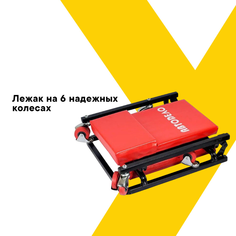 Незаменимый как для автослесаря или другого сотрудника автосервиса, так и в собственном гараже, ремонтный подкатной лежак габаритами 930х440х105 мм. Материал изготовления анатомической лежанки этой компактной тележки – качественный ударопрочный пластик, устойчивый к воздействию различных, в том числе и агрессивных, технических жидкостей. Рама изготовлена из стальной профильной трубы, надежно защищенной от коррозии слоем ЛКП. На 6 колесах, а именно – с 3 парами надежных продуманных поворотных колес, изготовленных из резины и имеющих бесшумный мягкий ход. Лежак под машину с поролоновым подголовником, обтянутым искусственной кожей, оборудован удобной ручкой для максимального удобства перемещения. Рабочие инструменты, запчасти и элементы крепежа удобно размещать в специальных лотках.