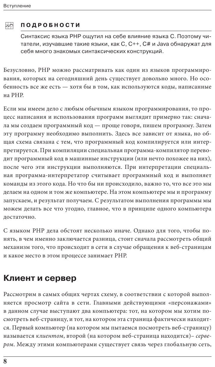 Стать PHP-программистом может каждый! В этой книге, написанной автором таких бестселлеров, как "Программирование на Java для начинающих" и "Программирование на C++ в примерах и задача"", Алексеем Васильевым, собраны абсолютно все необходимые для освоения языка знания. Автор подает информацию логично и структурированно - вы начнете с основ, позволяющих понять, как устроен PHP, познакомитесь со средами разработки для него и перейдете к освоению синтаксических конструкций и подходов, применяемых в программировании на PHP. Этот самоучитель подарит вам уверенность в собственных силах, ведь авторская методика Алексея Васильева строится на максимально понятном для новичков изложении даже самых сложных тем в программировании. Желаем успехов в обучении!