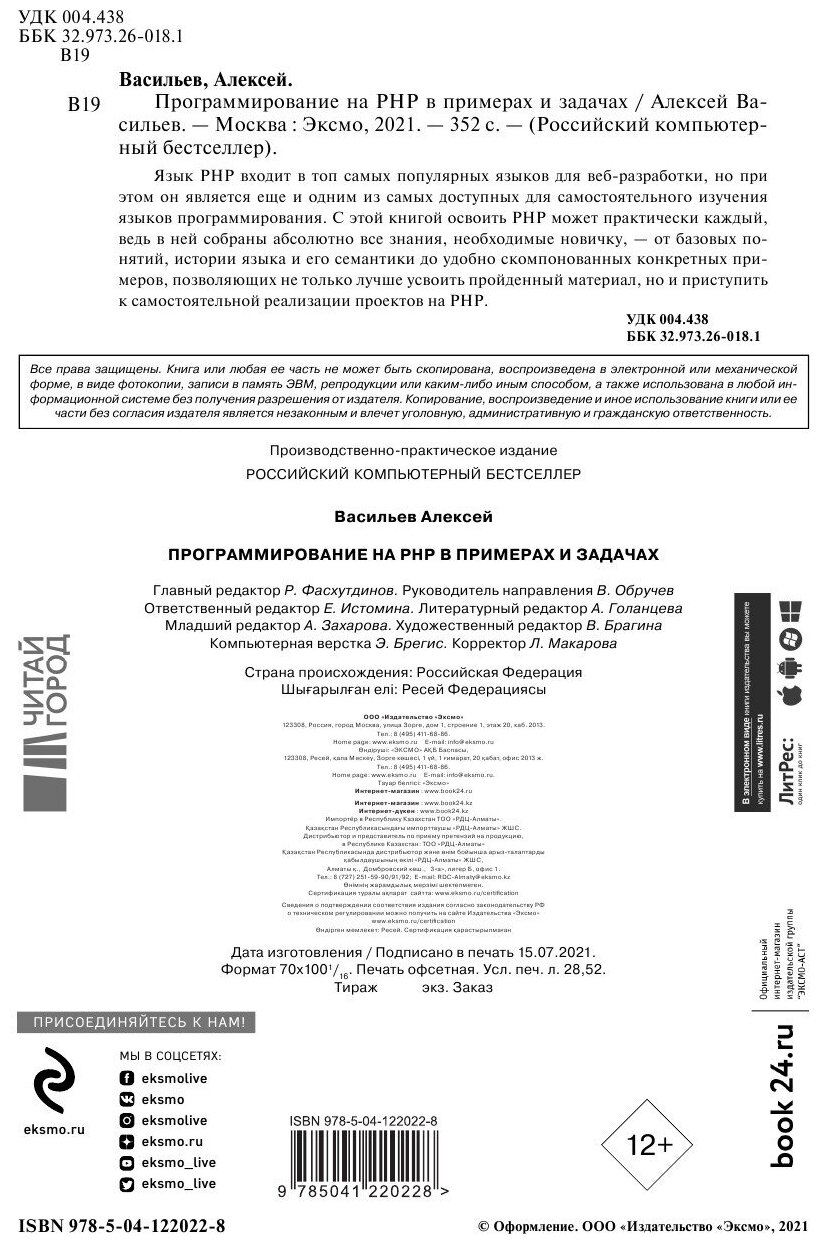 Программирование на PHP в примерах и задачах (Васильев Алексей Николаевич); ООО "Издательство "Эксмо", 2021