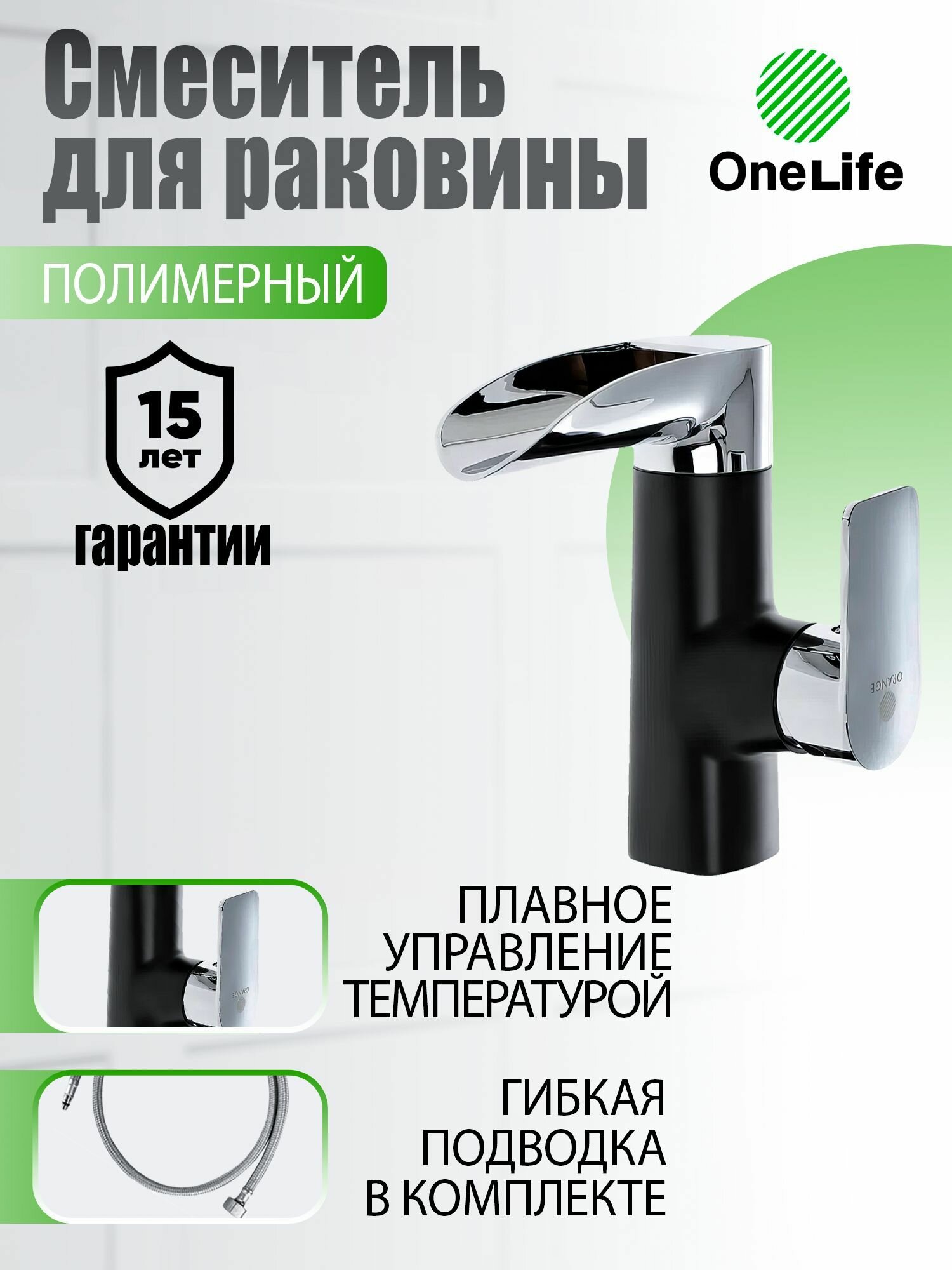 Смеситель для раковины Orange OneLife P08-921b Черный матовый Хром глянцевый