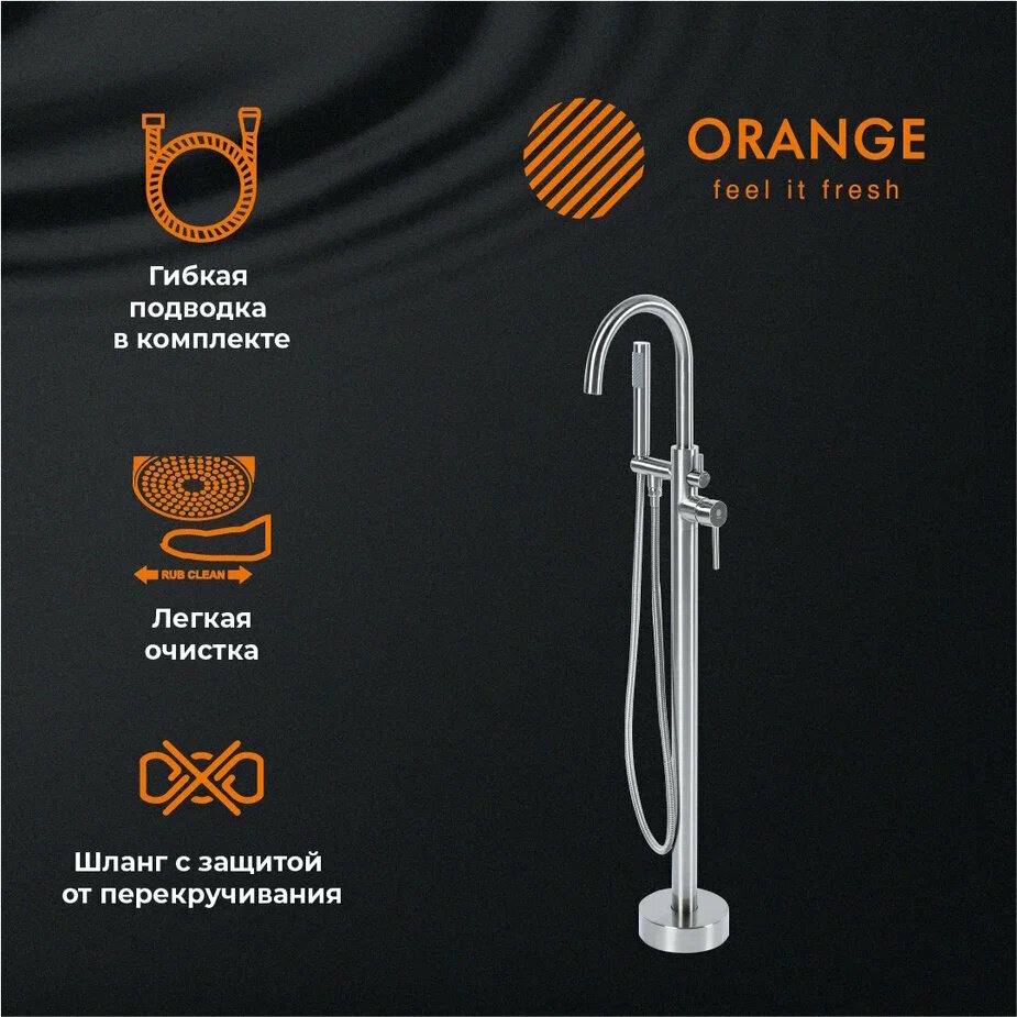 **Смеситель для ванны Orange Steel M99-336NI** предназначен для установки на пол. Оснащен поворотным изливом и душем. Выполнен в лаконичном дизайне, органично смотрится в современных интерьерах. Актуален для объектов, где вывод воды предусмотрен со стороны пола. Прочный латунный корпус модели покрыт напылением, надежно защищающим от коррозии при длительном и постоянном контакте с водой. За поверхностью легко ухаживать при помощи влажной салфетки.