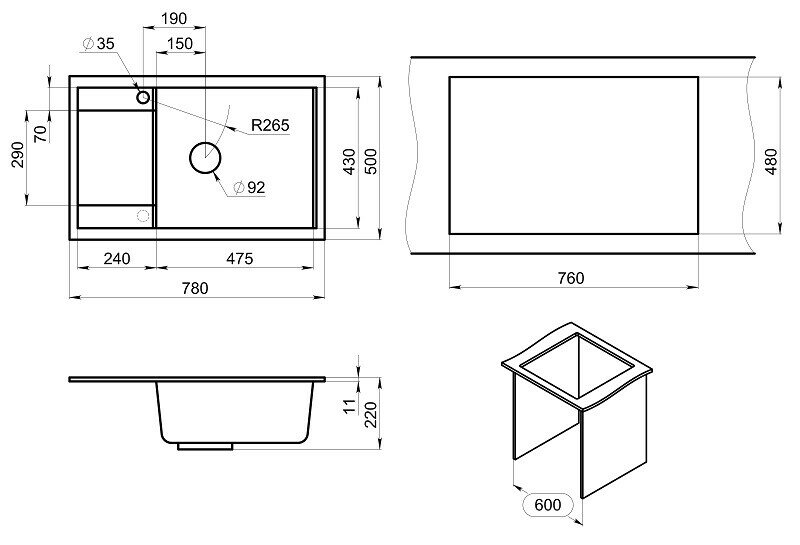 - Материал: искусственный гранит.
