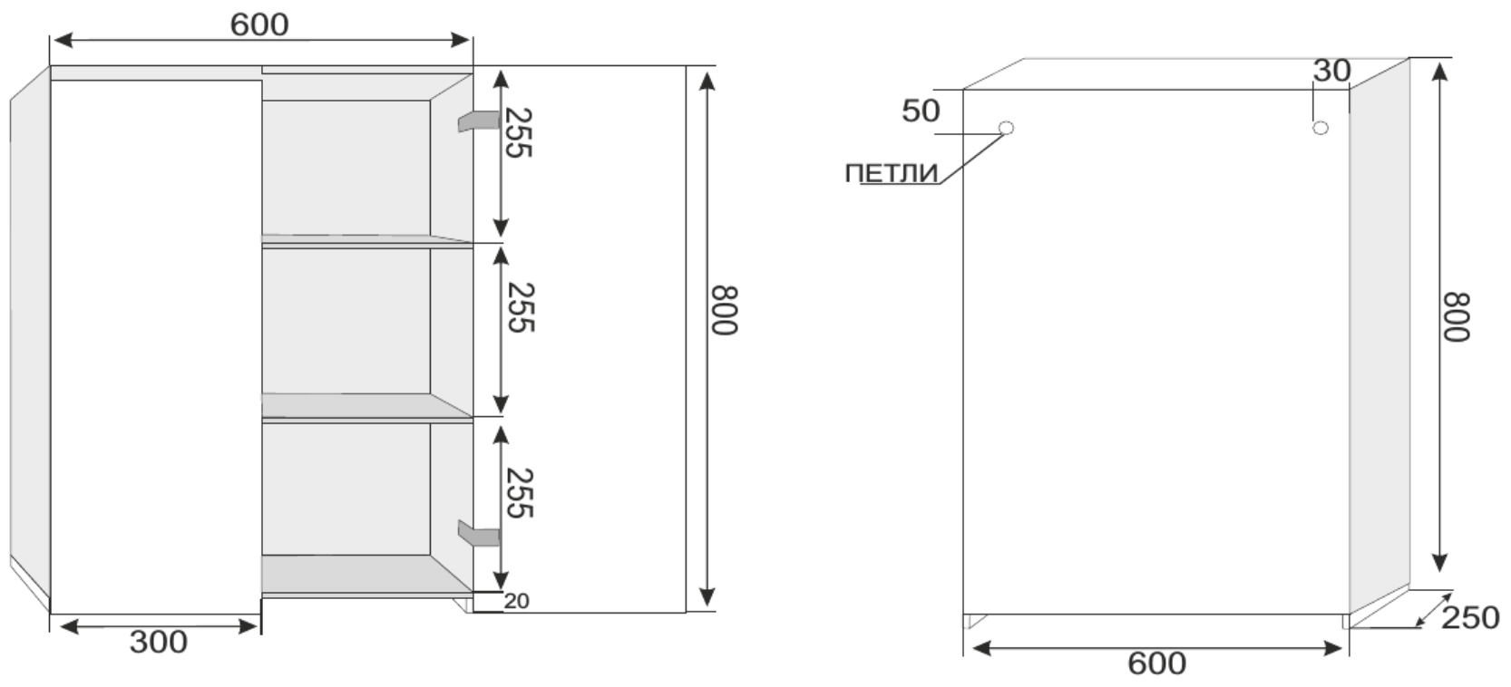 - Габариты корпуса (ШхВхД): 600 х 800 х 250 мм.