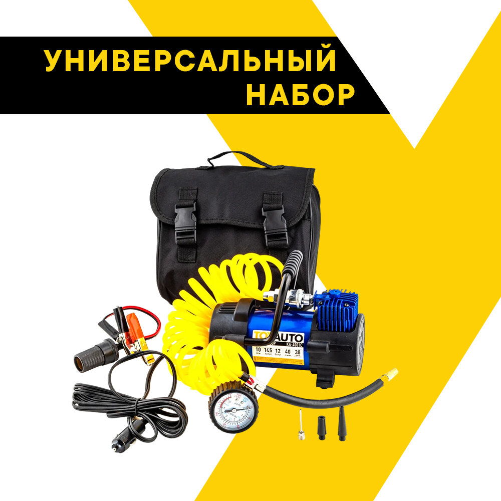 Компрессор предназначен для подкачки автомобильных шин - для легковых и коммерческих автомобилей, а также мотоциклетных и велосипедных шин, шин детских колясок. Также можно использовать для накачивания воздухом резиновых лодок, матрасов, бассейнов, надувных игрушек и спортивного инвентаря. Компрессор поршневой "Топ Авто" НЕ требует обслуживания, так как оснащён системой постоянной смазки двигателя! Макс. давление, ATM/PSI - 10/147. Длина витого шланга из полиуретана - 4 м. Сумка для хранения и насадки в комплекте.